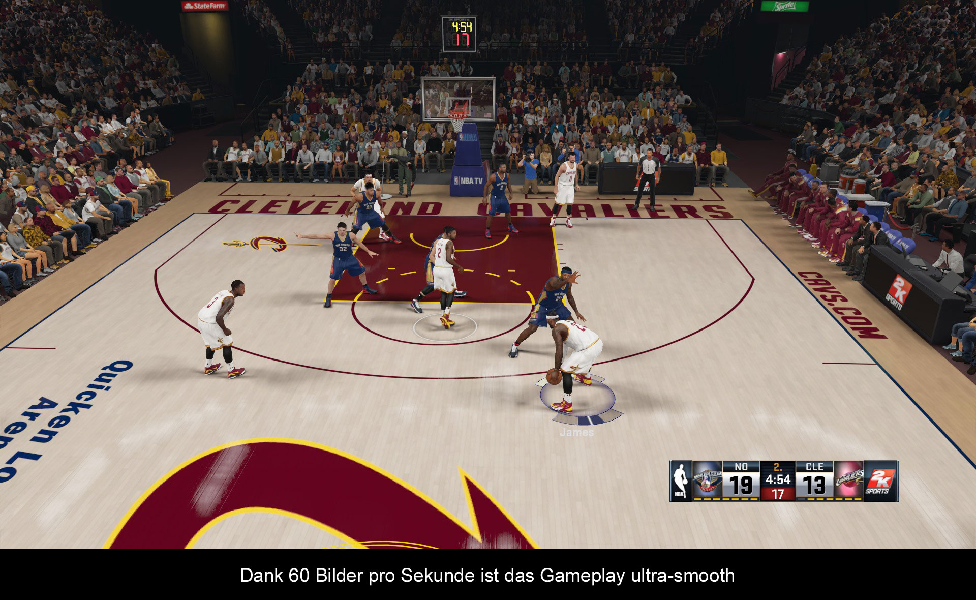 Was das Gameplay von „NBA 2K15“ angeht hat sich im Vergleich zum Vorgänger nur wenig geändert. Nichtsdestotrotz gibt es hier und da einige Veränderungen, auf die es einzugehen gilt. Dazu gehört unter anderem die neue Wurfanzeige, die unter sämtlichen Spielern dargestellt wird. Diese soll dabei helfen den richtigen Zeitpunkt für den Abwurf zu finden. Hilfreich ist dies vor allem bei der Verwendung von eher unbekannten Spielern, da diese oftmals einen Release haben, der sich stark von den meisten Starspielern unterscheidet. Darüber hinaus wurde auch die Kollisionsabfrage nochmals verbessert, was darin resultiert, dass das Gameplay inzwischen so flüssig, wie noch nie zuvor rüberkommt. Doch es gibt auch ein paar negative Aspekte: Dazu gehört unter anderem die etwas zu empfindlich geratene Steuerung eures Spielers im Defensivverhalten. So reicht beispielsweise schon eine leichte Bewegung des Analogsticks aus, um euren Spieler etwas zu weit in die jeweilige Richtung zu bewegen. Währenddessen ist der Gegenspieler meist schon über alle Berge. Insbesondere, wenn die Rivalen Derrick Rose oder LeBron James heißen. Alles in allem werden sich Kenner der Serie aber schnell, wie zuhause fühlen. Und für potentielle Neueinsteiger gibt es nicht nur hervorragende Tutorial-Videos, sondern auch Belehrungen über die fundamentalen Spielweisen des Basketballsports. Und dank deutscher Untertitel können dies auch Zocker genießen, die keine erweiterten Englischkenntnisse besitzen.