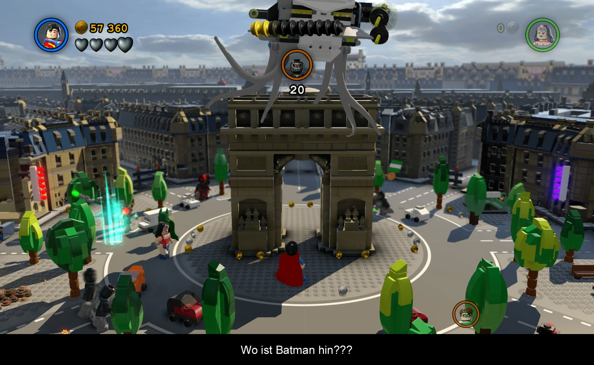 Neu sind auch die kurzen Weltraumschlachten. In einer Art „Resogun“ Manier umkreist man das Feindschiff und schießt die Gegner ab. Das System wurde sehr einfach gehalten und es gibt keine Leben. Hier sind wir wieder beim bekanntesten Kritikpunkt. Es ist kein Geheimnis, dass sich die Spiele an eine jüngere Zielgruppe richten und man die Levels so designt hat, damit diese auch ihren Spaß haben. Aber warum müssen extra erstellte virtuelle Missionen auch so sein? Es ist nett, sich in Sprung und Kampfeinlagen gesondert zu beweisen, doch auch hier gilt das bekannte System der unendlichen Versuche. Sehr schade, denn vorgegebene Schwierigkeitsgrade und Leben würden hier Sinn machen. Auch ein wenig schade ist, dass die offene Spielwelt aus dem Vorgänger wieder gestrichen wurde. Stattdessen gibt es mehrere größere Hub-Welten. Diese sind zwar untereinander verbunden und wurden sogar in die Handlung eingearbeitet, doch irgendwie springt der Funke nicht so recht über. Auch jeder Lantern Planet ist eine kleine, runde Hub-Welt mit verschiedenen Aufgaben und Rennen. Immerhin positiv zu erwähnen ist der Planet Oa, der nichts weiter ist, als eine riesige Rennstrecke. Hier kann man nach Herzenslust die freigespielten Fahrzeuge testen. Die restlichen - üblichen - Kritikpunkte der LEGO Spiele sind auch in „Batman 3“ vorhanden. Der Zwei Spieler Modus funktioniert nur lokal an einem Fernseher, die Kamera irrt oftmals in der Gegend herum, die Steuerung ist total überladen und es gibt zu viele lieblose Quests!