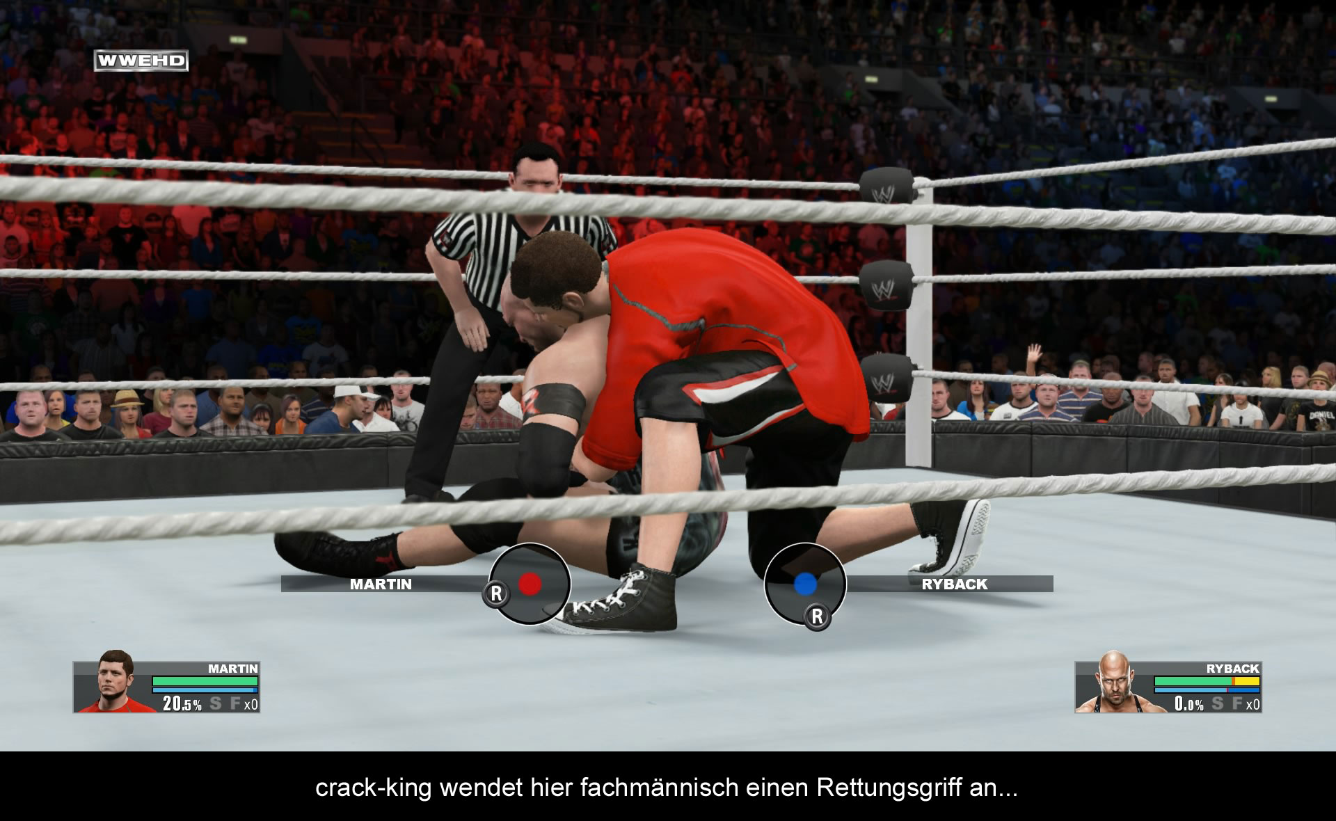 Gameplaymäßig kommt mit WWE 2K15 definitiv keine Revolution, aber durchaus ein paar Änderungen. So gibt es neuerdings eine dreigeteilte Ausdauer- und Lebenspunkteanzeige. Die Ausdaueranzeige verfügt über drei Balken und signalisiert eben wie stark der Spieler noch ist. Wer also von Beginn an wie ein Berserker auf den Gegner einprügelt, hinterlässt zwar bleibenden Eindruck, aber hat dann Probleme aufzustehen, wenn der Gegner einem einen heftigen Schlag verpasst. So muss man hier das Gleichgewicht halten und aufpassen, denn sobald ein Balken mal weg ist, bekommt man ihn nicht wieder. Nur innerhalb eines Balkens regeneriert die Ausdauer mit der Zeit. Zudem findet sich unterhalb der Ausdaueranzeige die sogenannte „Schwung“-Anzeige, die nach erfolgreichen Angriffen steigt. Je nach Charakter steigt sie schneller oder langsamer und erreicht sie 100% erhält man einen Signature Move. Kann man diesen erfolgreich ausführen, erhält man sogar einen Finisher-Move. Kann der Gegner diesen aber Kontern verliert man seinen Signature oder Finnischer Move und der Gegner erhält die Möglichkeit für einen Finisher. Obwohl man also den Gegner an die Wand spielt, kann durch einen Konter der komplette Kampfverlauf über den Haufen geworfen werden. Kontern ist sowieso das halbe Leben in dem Spiel. Denn nur so kann man sich gegen die Angriffe der Gegner wehren. Wer das Kontern nicht drauf hat, wird leider keine Chance haben. Ansonsten ist das Gameplay im Kern identisch geblieben, auch wenn die Griffe jetzt in eine Art Schere Stein Papier Spiel ausarten. Denn sobald man einen Gegner in die Mangel nehmen möchte, hat man die Wahl zwischen drei Griffen, wie im Schere-Stein-Papier Prinzip. Je nachdem wer gewinnt, hat derjenige Spieler dann die Oberhand und kann seinen Gegner dann beackern. Die Position kann auch gewechselt werden, indem man den rechten Analogstick in eine bestimmte Position bringt und hält. Der Gegner kann sich so auch befreien und es kommt am Ende darauf an, wer schneller ist. Leider nicht sonderlich herausfordernd, da der Ausgang davon nur mit Glück zu tun hat. Ansonsten hat sich nicht viel getan und viele der Kampfanimationen wirken immer noch etwas steif, aber immerhin merkt man es beim Spielen kaum.