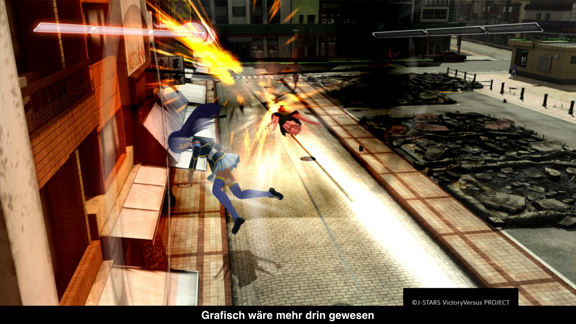 Während man sich durch die viel zu lange Handlung quält, gewinnt man jede Menge J-Punkte, die grundlegende Währung des Spieles. Damit lassen sich neue Charakter freischalten, aber auch verschiedene Münzen erwerben. Mit diesen Münzen kann man aus einen Automat zufällige Karten ziehen, welche dem Charakter Bonuspunkte verschaffen. Hier ein bisschen mehr Lebensenergie, da wiederum eine kürzere Aufladezeit. Natürlich hat auch jede Karte einen negativen Effekt den man umgehen kann, wenn man drei spezielle Karten aneinander reiht. Um Punkte für den Kauf der Münzen zu gewinnen, darf man jede Menge Kämpfe bestreiten und unter anderem auch die Siegesstraße. Hier findet man über 100 vordefinierte Kämpfe, die man mit jedem beliebigen Charakter-Team bestreiten kann. Zur Abwechslung gibt es hier immer kleinere Bonusziele, welche die J-Punkte boosten. Daneben findet man noch den klassischen Online Kampf und einen Versus Modus! Was man dem Spiel zugutehalten muss ist, dass man sämtliche Kämpfe lokal zu zweit spielen kann! Wer nun noch hofft, dass man neue Kostüme oder Musikstücke freischalten kann, den muss ich enttäuschen. Hier gibt es nichts außer Karten und Kämpfe.