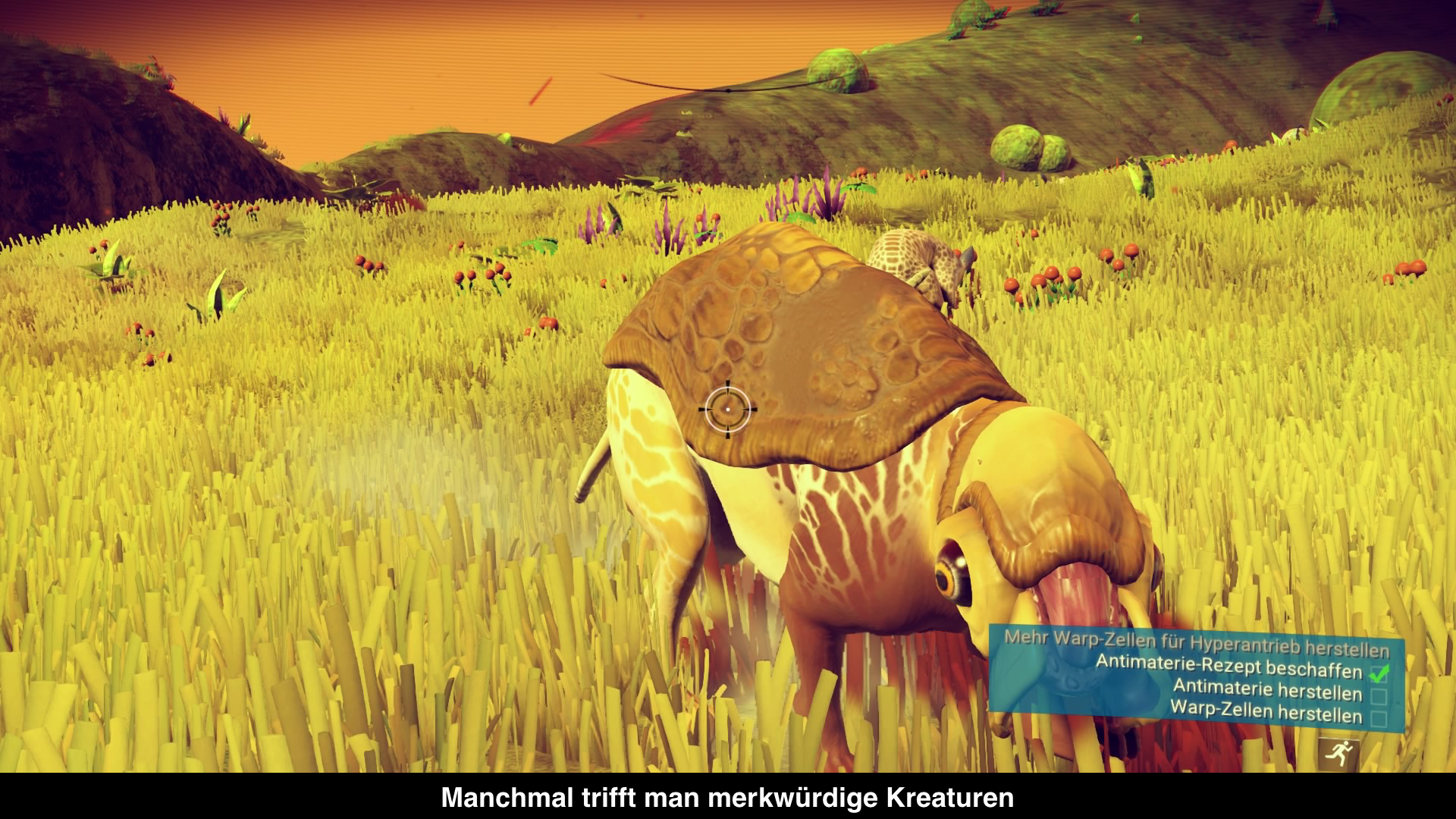 Die Musik des Spiels wird übrigens auch prozedural generiert, was aber eher schlecht als recht funktioniert. In gewissen Momenten kann sie zwar durchaus die Szenerie unterstützen, aber oftmals wirkt sie fehl am Platz. Manchmal ist man völlig alleine auf einem Planeten und dann setzt plötzlich völlig ohne Grund irgendein billiges Drumsolo ein, was überhaupt nicht passt oder man hört Laute von Tieren, obwohl weit und breit keine zu sehen sind.