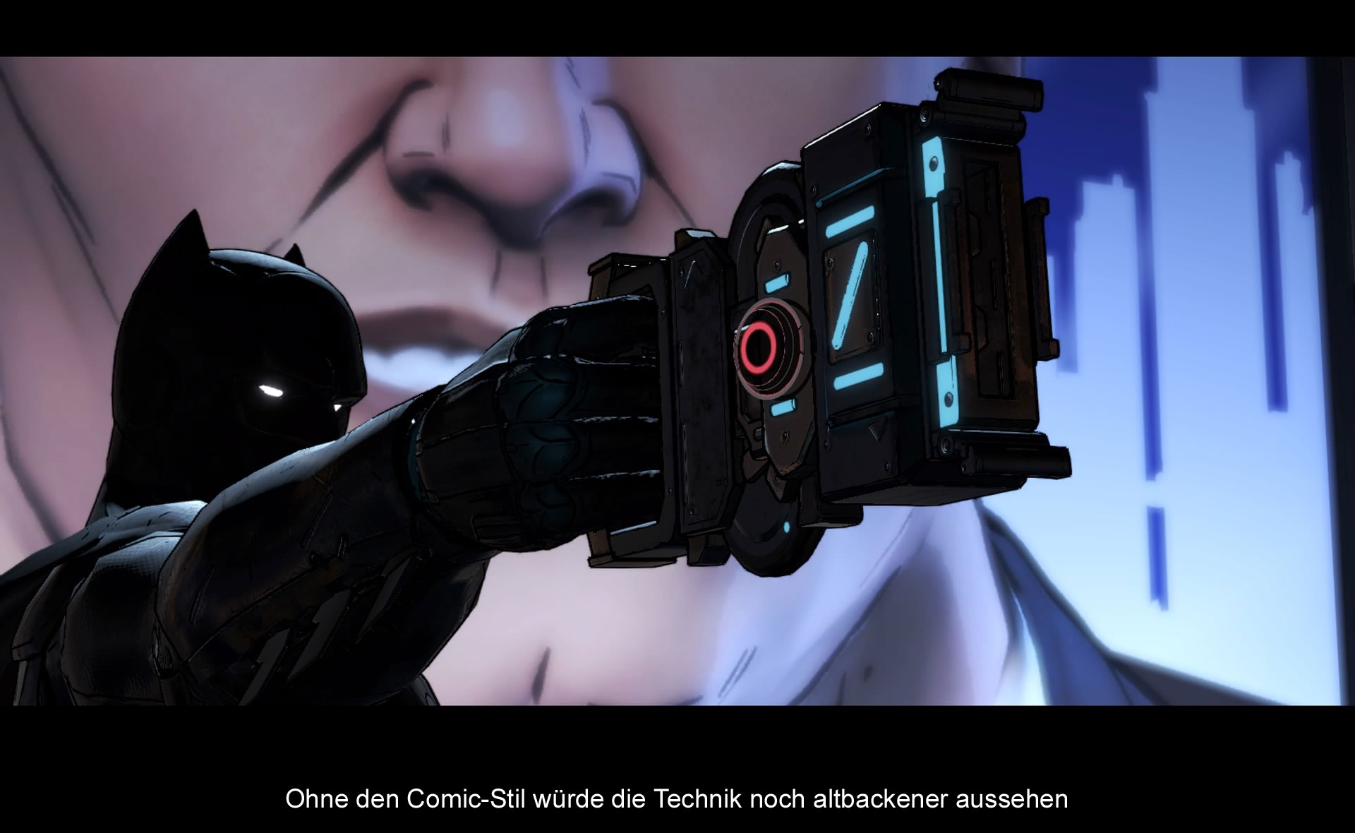 Qucik Time Events und Dialoge sind die Gadgets mit denen Telltale Games arbeitet und sie sind hier zahlreich vertreten. Über die gut zwei Stunden gibt es verschiedene Entscheidungen zu treffen, die sich auf in der Handlung auswirken. Naturgemäß sind diese in Episode 1 relativ unbedeutend, doch legt man hier einige wichtige Grundsteine. Will man einen eiskalten Frank Miller Batman, der nicht vor Gewalt zurück schreckt oder einen Scott Snyder Batman, der mit Furcht und Taktik vorgeht. QTE wurden wieder so gewählt, dass sie gut von der Hand gehen und das gezeigte am Bildschirm widerspiegeln. Es gibt zwar ein paar Aussetzer, doch sind diese nicht gravierend. Neu ist das Batman Symbol in der Ecke. Hat man einen Großteil der QTE Richtig ausgeführt bekommt man einen schönen Batman Slowmotion-Takedown zu sehen. Völlig neu sind kleine Rätsel, die diese Bezeichnung im Vergleich zu anderen Telltale Spielen verdienen. Als guter Detektiv gilt es Verbrechensschauplätze zu analysieren. Hat man alle Beweise muss man diese Sinnvoll miteinander verketten. Am Ende entsteht ein Bild, was an diesem Schauplatz vorgefallen ist. Weitere Neuheiten betreffen den individuellen Verlauf der Geschichte. Als kleinen Aperitif kann man am Anfang der Geschichte die Farbe seiner Bat-Gadget wählen. Weiter geht es dann bei den Action Sequenzen. Hier lässt einem das Spiel die Wahl zwischen zwei oder drei Takedowns. Spielerisch eher Nebensache, erhöht aber den Wiederspielwert!