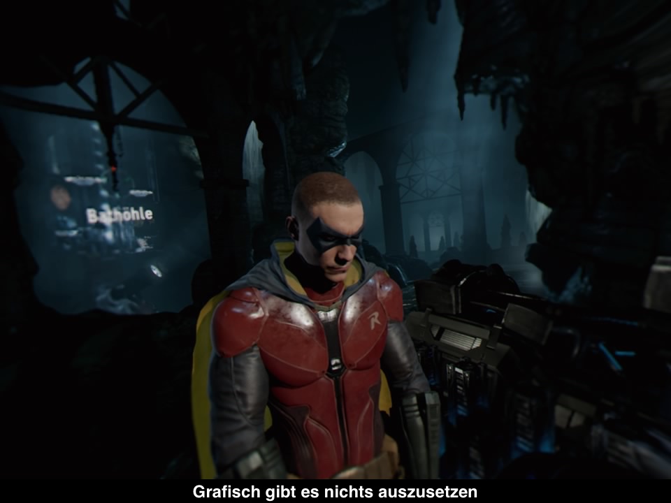 Bevor man in ein VR-Spiel geht, muss man immer wissen, dass die technischen Anforderungen an ein VR-Spiel deutlich höher sind als an ein normales Spiel. Immerhin berechnet man zwei Bilder und die Bildrate muss viel höher sein. Aber offenbar interessiert dies Batman: Arkham VR nicht, denn das Spiel sieht einfach umwerfend aus. Charaktere sind extrem detailliert, die Umgebungen sind groß und man denkt wahrlich man sei in Gotham. Einzig manche Gebäudetexturen sind möglicherweise nicht sehr hoch aufgelöst, aber das stört kaum. Ansonsten ist das Spiel in jeglicher Hinsicht ein echter Hingucker in der VR-Welt, was auch zur Immersion beiträgt. Musikalisch ist es ähnlich gut, weil man wieder die bekannten Sprecher zu Hören bekommt. Leider sprechen sie aber nur englisch, immerhin sind die Texte aber auf deutsch.