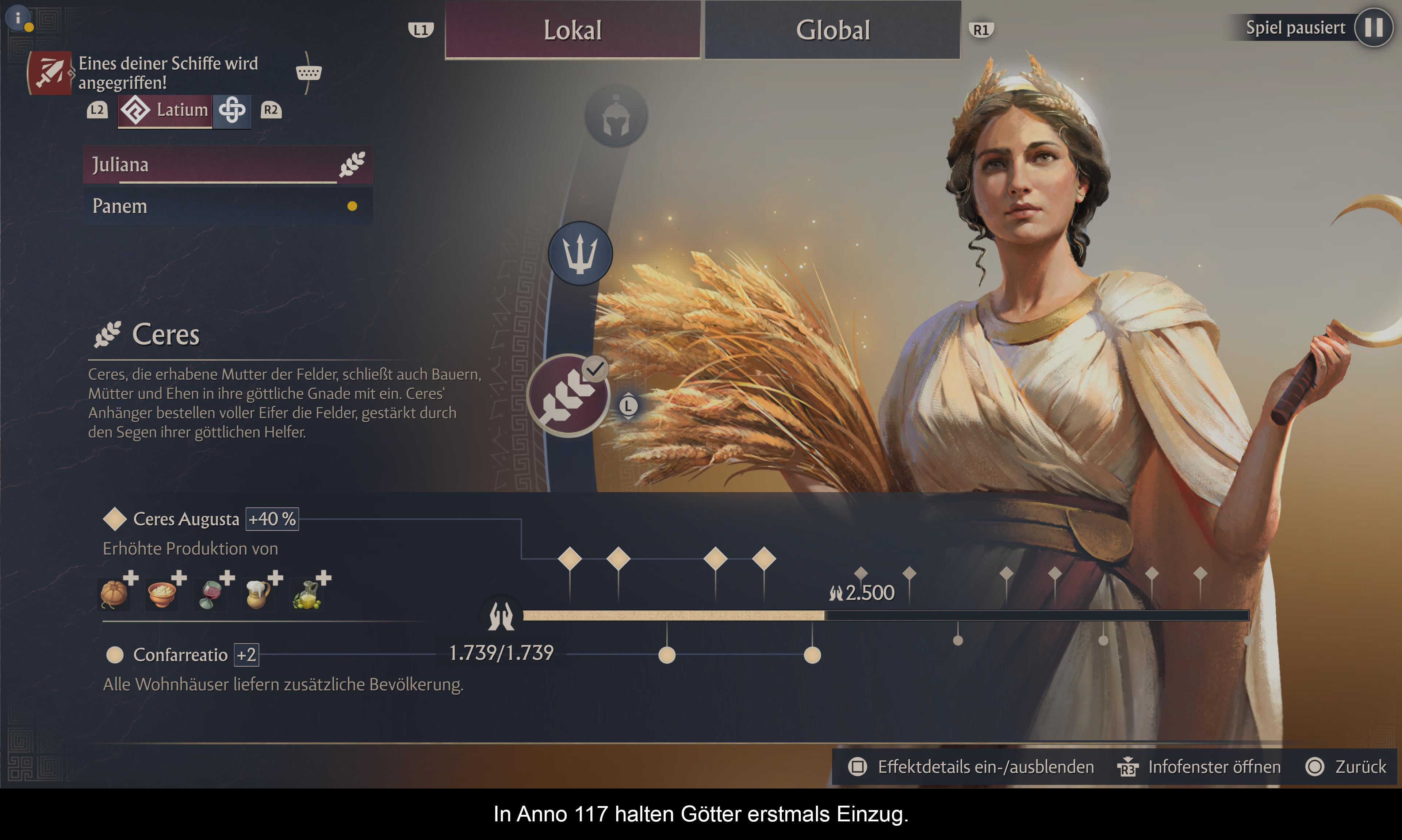 Das Römische Reich und die Kelten bringen ihr eigenes Götter-Pantheon mit sich. Jeder Insel kann ein bestimmter Gott zugeordnet werden, was zusätzliche Buffs für Ernten, Produktionen oder Wissen bringt. Mit steigender Verehrung werden weitere Boni wie Gebäude und Statuen freigeschaltet. Eine weitere Möglichkeit, die Produktivität zu steigern, sind die Spezialisten. Diese erhält man während Festen oder bei Händlern. Setzt man sie in die Villa oder das Officium, bieten sie Umgebungseffekte. Ähnliches gibt es bei Schiffen mit Kapitänen. Als letztes großes Menü verbirgt sich die Forschung. Hier werden neue Technologien und Verbesserungen freigeschaltet. Er gliedert sich in Wirtschaft, Zivilgesellschaft und Militär. Auch hier gilt, je mehr Wissens Einrichtungen hat, desto schneller werden Technologien freigeschaltet. Spielstandübergreifend findet man noch die Ruhmeshalle. Bei Erfüllen entsprechender Bedingungen bekommt man Punkte, welche man in gestalterische Ornamente investieren kann oder auch Technologien dauerhaft freischaltet. Ob dieses System „der Weisheit letzter Schluss“ ist kann angezweifelt werden.