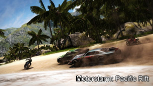 Was man zu Zeiten von Grafikknallern wie „Uncharted" und „Killzone 2" nicht vergessen darf, ist natürlich die technische Umsetzung eines Spiels. Und in diesem Bereich gibt es fast nichts auszusetzen. Denn obwohl schon der erste Teil grandios aussah, konnte man die Optik für „Pacific Rift" weiter verfeinern und die flüssige Framerate trotzdem beibehalten. Die Autos strotzen nur so vor Details und bei einem Unfall kommt man mit dem zählen, der durch die Luft fliegenden Einzelteile, nicht mehr nach. Vor allem aber die Strecken verdienen ein großes Lob. Während die Kurse im Vorgänger noch größtenteils in kargen Felslandschaften angesiedelt waren, düst man nun über eine dicht bewaldete grüne Insel. Doch keine Bange, Schlammpisten, malerische Strände und hohe Berge gibt es auch im Spiel. An Abwechslung im Streckendesign mangelt dieses Mal mit Sicherheit nicht. Einzig und allein die eine oder andere Bodentextur fällt etwas zu matschig aus, was den Gesamteindruck jedoch nur geringfügig beeinflusst. Weniger gelungen ist dagegen der Soundtrack. Dieser setzt zwar wie der Vorgänger auf eine harte Mischung aus Elektro-Beats und Rockmusik, doch irgendwie will der Funke dieses Mal nicht so recht herüber springen. Glücklicherweise geben die Entwickler in „Pacific Rift" dem Spieler die Möglichkeit, seine eigene Musik einzubinden. Das geht kinderleicht über die Ingame Musik Funktion des XMB und lässt somit fast keine Wünsche offen. Fast, weil man Online nicht auf die eigenen Soundtracks zugreifen kann.