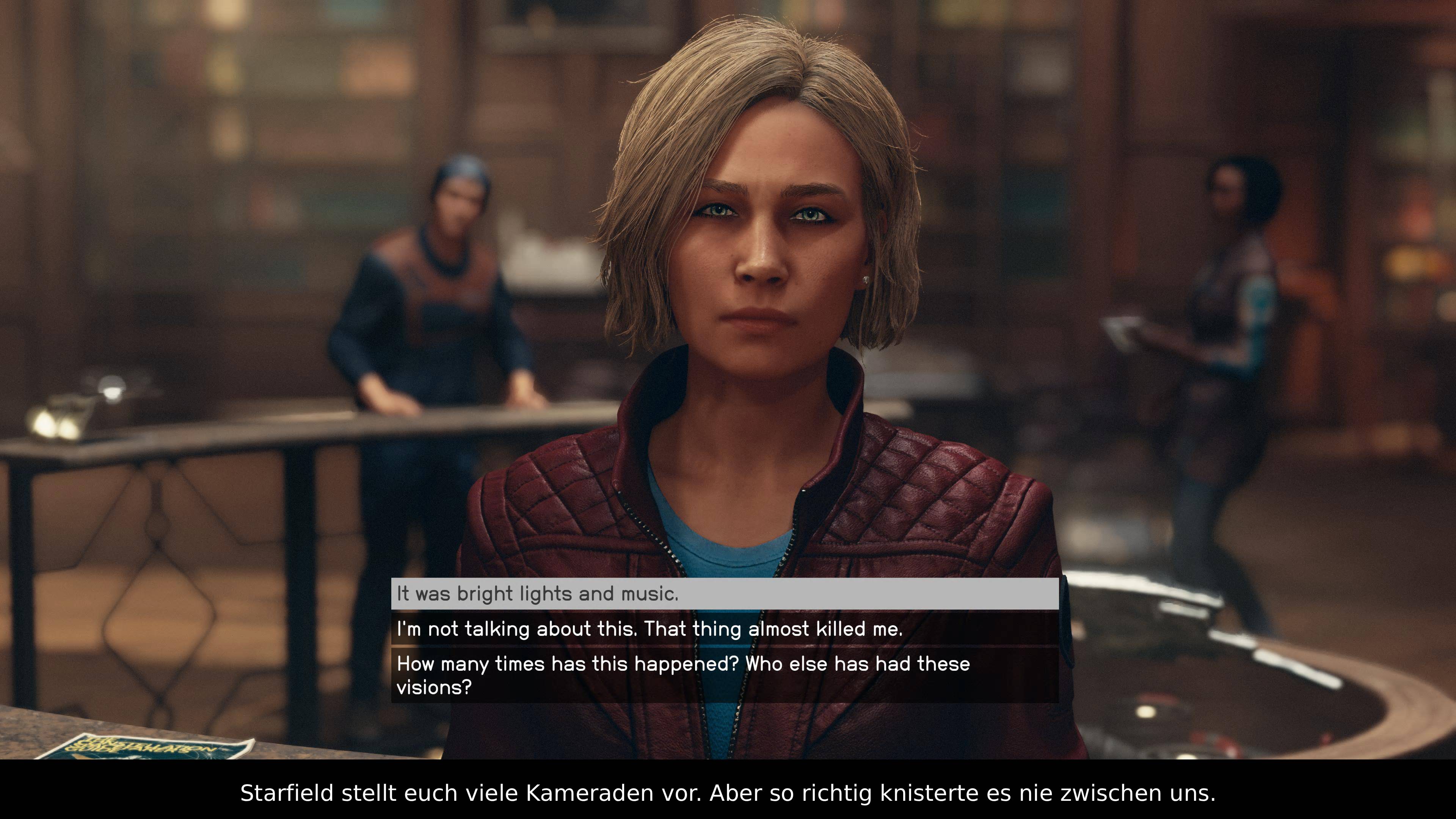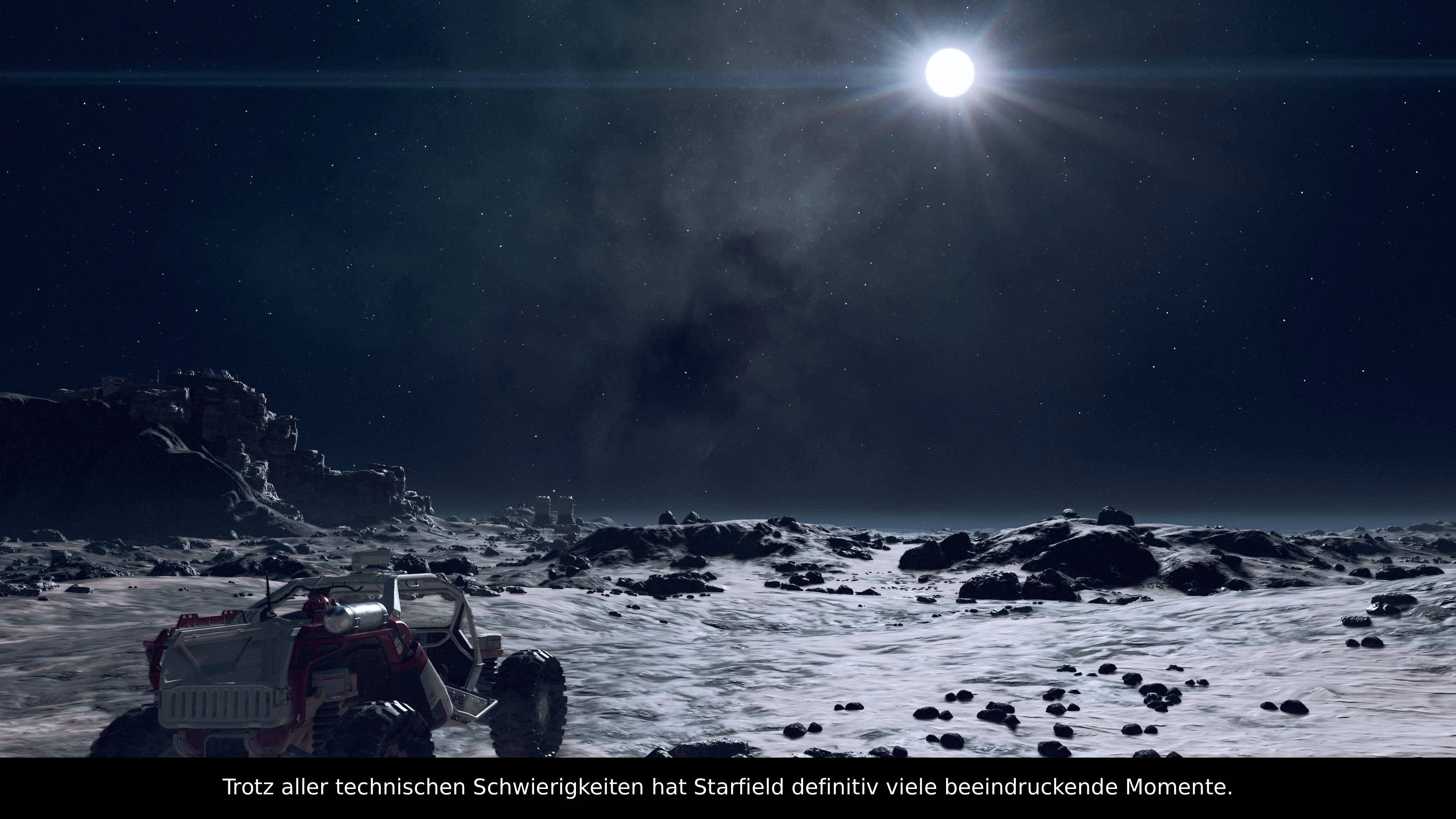 Beim akustischen Teil gibt es hingegen absolut nichts zu beanstanden. Der Soundtrack stammt erneut vom bewährten Komponisten Inon Zur, der mit seiner orchestral-elektronischen Fusion aus kosmischer Weite und emotionaler Intensität die Atmosphäre von Starfield perfekt einfängt. Auch die Synchronsprecher liefern durchweg starke Leistungen - auch wenn das Skript, das sie vortragen, nicht immer auf höchstem Niveau ist. An Enthusiasmus und Präsenz mangelt es den Darstellern jedoch definitiv nicht.