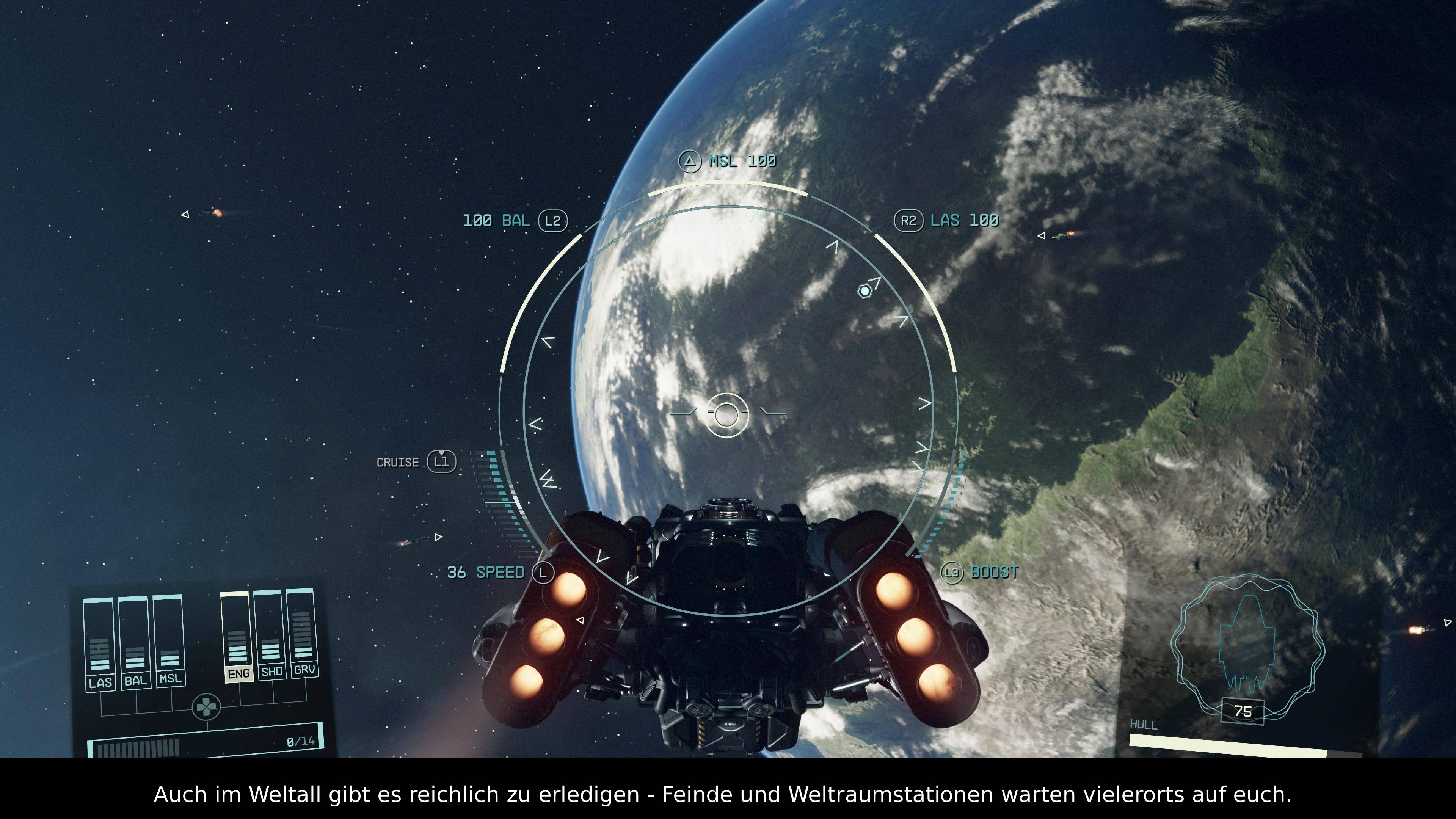 Doch die Action beschränkt sich längst nicht nur auf den festen Boden – auch im Weltraum erwarten euch zahlreiche Gefechte. Die Steuerung eures Raumschiffs geht dabei angenehm leicht von der Hand und sorgt schnell für ein gutes Gefühl im All. Ähnlich wie bei den Missionen auf Planetenoberflächen gibt es auch im Orbit reichlich Ressourcen zu entdecken und einzusammeln. Mit dem „Free Lanes“-Update, das gemeinsam mit der PS5-Version veröffentlicht wurde, hat Bethesda zudem eine oft gewünschte Funktion nachgereicht: Es ist nun möglich, innerhalb eines Sternsystems in Echtzeit zwischen Planeten zu reisen. Gerade für Fans immersiver Weltraumerkundung dürfte dieses Feature ein echter Zugewinn sein. Ein häufig genannter Kritikpunkt zum Release war die starke Abhängigkeit von Schnellreisen. Diese Einschätzung ist durchaus nachvollziehbar, allerdings fiel dieser Aspekt im Spielfluss weniger negativ ins Gewicht, da euch Starfield ohnehin quer durch die Galaxie schickt und ihr einen Großteil eurer Zeit in Dungeons oder auf Planeten verbringt. Nichtsdestotrotz dürfte das neue System vor allem jene Spieler zufriedenstellen, die sich mehr Tiefe und Freiheit bei der interplanetaren Fortbewegung gewünscht haben.