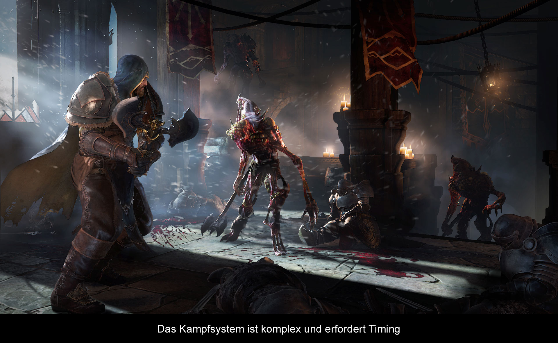 A: Also was wir nicht gemacht haben, ist den Markt zu befragen. Also quasi zu fragen, was der Markt eigentlich gerade will. Das wäre wohl irgendwie ein Zombie-Produkt geworden. Das haben wir auch noch nie gemacht! Deswegen sind wohl auch viele unserer vergangenen Spiele nicht so bekannt geworden, weil wir gesagt haben. Hey, wir haben eine coole Idee, wir wollen das durchziehen und natürlich hören wir auch auf die Spieler, wenn wir ihnen das Spiel zeigen. „Was haltet ihr davon?“ Und dabei versuchen wir möglichst viel Feedback wieder reinzukriegen, um entsprechende Dinge zu verändern und möglicherweise auch den Schwerpunkt zu verändern. Aber die Grundideen, wie wir das Spiel ausrichten wollten, kamen eher daher, dass wir davon ausgingen, dass sich ein Spiel in dieser Art und Weise gut anfühlen würde. Denn so hätten wir auch Lust das selber zu spielen. Das ist unsere Philosophie und deswegen versuchen wir eine schöne Idee zu gestalten und erst dann zu schauen, wie gut sie ankommt. Und im Falle von Lords of the Fallen scheint es sehr gut anzukommen, was uns auch freut.