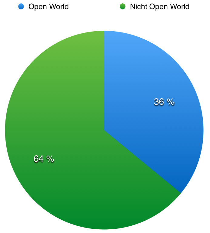 Die meisten Spiele sind somit keine Open-World Spiele, aber im Vergleich zum Vorjahr ist der Anteil sicherlich gewachsen. Immerhin sind über ein Drittel der gewählten Spiele Open-World Spiele, die offenbar Anklang finden. Es wird spannend sein zu vergleichen, wie sich diese Zahl in den nächsten Jahren entwickeln wird.