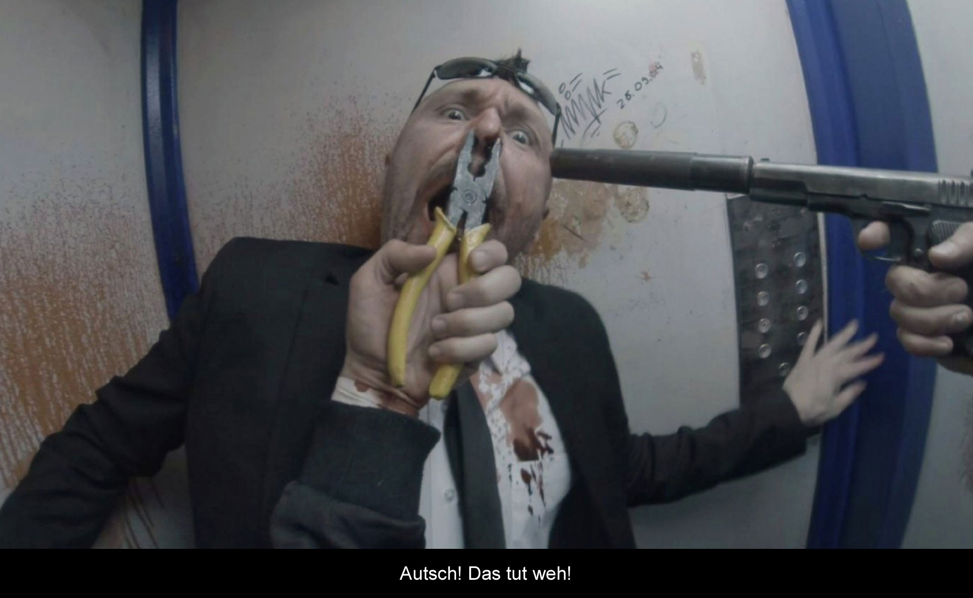 Da ich nicht zu viel verraten möchte, halte ich mich kurz: Die Story könnte glatt aus einem Videospiel stammen. Sie ist nicht sonderlich anspruchsvoll oder komplex, strotzt vor Klischees, verrichtet aber ihren Zweck und verbindet die einzelnen Szenen zu etwas Ganzem. Es gibt sogar einen Endgegner! Und Kampfbabes mit Katanas und Titten! Also alles dabei, was man sich (als Mann) so wünscht. Natürlich wird im Film nicht zimperlich vorgegangen, da tut es schon mal beim Zuschauen weh, wenn Henry einem Gegner den Brustkorb öffnet, oder mit der Kneifzange, an der Nase wohlgemerkt, als menschliches Schutzschild missbraucht. Aber „Hardcore“ ist kein Splatterfilm! Und er nimmt sich auch nicht allzu Ernst – es gibt immer wieder witzige Momente, die das Geschehen auflockern. Trotzdem kracht es ab der Hälfte fasst permanent und mir fiel nach dem Ende spontan eine Umschreibung für dieses Erlebnis ein: Gewaltporno!