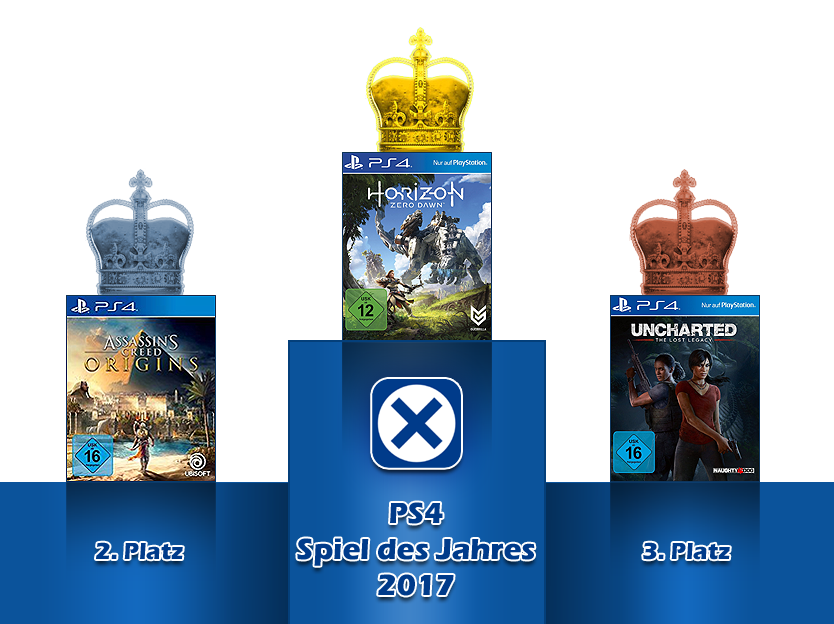 Kommen euch die drei Spiele bekannt vor? Mir schon, denn sie gehörten dieses Jahr zur Creme de la Creme und bereiteten der Community den meisten Spaß. Auf Platz 3 hat es dabei Uncharted: The Lost Legacy geschafft, welches Nathan Drake endgültig in den Ruhestand geschickt hat. Stattdessen gehört die Welt nun unter anderem Nadine und Chloe, welche mindestens genauso mutig und frech unterwegs sind, wie einst Nathan. Dabei gibt es ein neues Setting zu erkunden und obwohl es nur als Erweiterung gedacht ist, steht es Uncharted 4 in nichts nach. Trotzdem empfanden viele Ubisofts Assassin`s Creed: Origins als noch besser, was fast schon der Auferstehung des Phönix aus der Asche gleichkommt. Nachdem der Unmut der Spieler über die letzten Titel spätestens seit Assassin`s Creed: Unity immer weiter wuchs, hat Ubisoft mit etwas mehr Entwicklungszeit und einem unverbrauchten Setting die Kehrtwende geschafft. Man hat das Gameplay überarbeitet, die Grafikengine ordentlich aufpoliert und schon ist es wieder ein Spiel, welches man sicht nicht entgehen lassen sollte. Aber dieses Jahr ging weder für Spieler, noch für andere Entwickler ein Weg an Horizon: Zero Dawn vorbei. Guerrilla Games konnte sich endlich aus den Fesseln des vermeintlichen Halo-Killers Killzone befreien und ihrer Kreativität freien Lauf lassen. Herausgekommen ist dabei ein post-apokalyptisches Epos mit Roboterdinos, die von Menschen mit Pfeil und Bogen gejagt werden. Klingt einzigartig und cool und das ist es auch! Und zur Überraschung aller hat man es auch geschafft all dies mit einer absolut durchdachten und logischen Geschichte zu verknüpfen, die einen bis zur letzten Sekunde packt. Zudem setzt man in Sachen Sound und Grafik neue Maßstäbe im Open-World Genre und was sonst hätte wohl den Titel "Spiel des Jahres 2017" mehr verdient als Horizon: Zero Dawn? Wir ziehen unseren Hut vor dir!