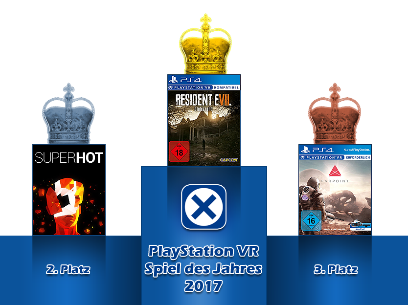 Farpoint war das erste Spiel, welches den neuen Aim-Controller unterstützt hat und so für ein völlig neues Gefühl der Immersion gesorgt hat. Zudem ist es eines der VR-Spiele, die einen auch über einen längeren Zeitraum unterhalten können. Trotzdem musste man sich Superhot VR auf Platz 2 geschlagen geben, welches das Rennen knapp gegenüber Platz 1 verloren hat und insbesondere durch den coolen Grafikstil und das Matrix-like Gameplay zu überzeugen weiß. Wer schon immer mal Neo sein wollte, kommt dem nirgends so nah wie in Superhot VR. Noch mehr Spaß hatten allerdings die Spieler offenbar mit Resident Evil 7 biohazard. Das Spiel stellt nicht nur eine Neuausrichtung der Serie dar, sondern war auch das erste richtige AAA-Spiel, welches komplett mit PlayStation VR spielbar war. Dank des Headsets ist das Spielgefühl noch intensiver und man muss keine Abstriche machen. Wer sich mal wieder so richtig gruseln möchte, bekommt mit Resident Evil 7 biohazard und PlayStation VR die beste Möglichkeit derzeit.