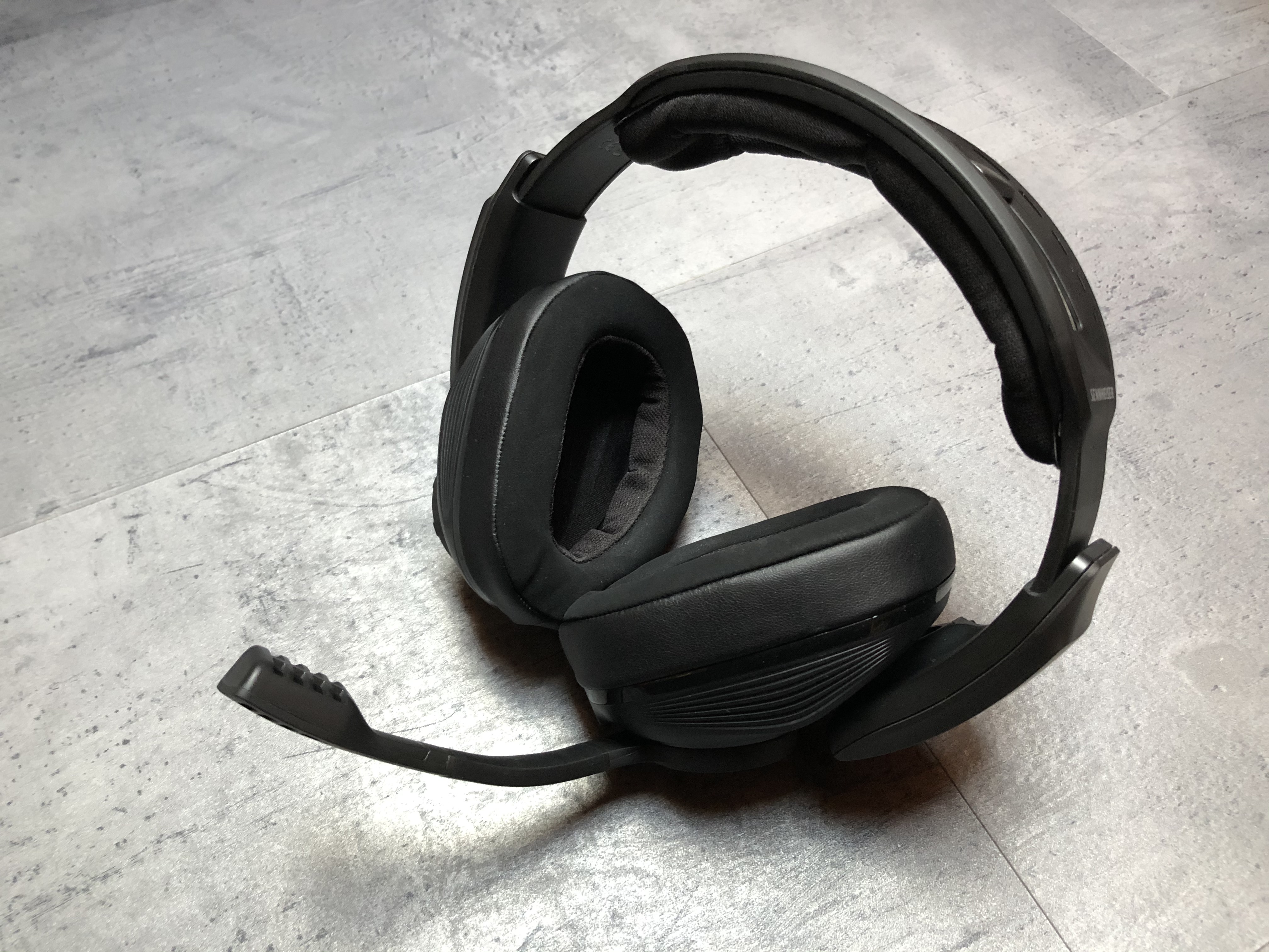 Das GSP 670 sieht schick aus und ist hochwertig verarbeitet. Die Ohrmuscheln schmiegen sich an die Ohren, der Bügel ist natürlich gepolstert und drück nicht (das ganze Gerät wiegt auch nur 398g) und die Größeneinstellungen funktionieren problemlos. Die Ohrmuscheln sind zudem mit Metallscharnieren am Bügel befestigt, was auch langlebiger sein sollte, als Plastik. Das Mikrofon ist auf der linken Seite angebracht und der Arm kann in der Höhe verstellt werden. Ausschalten tut man das Mikrofon, in dem man den Arm nach oben drückt.