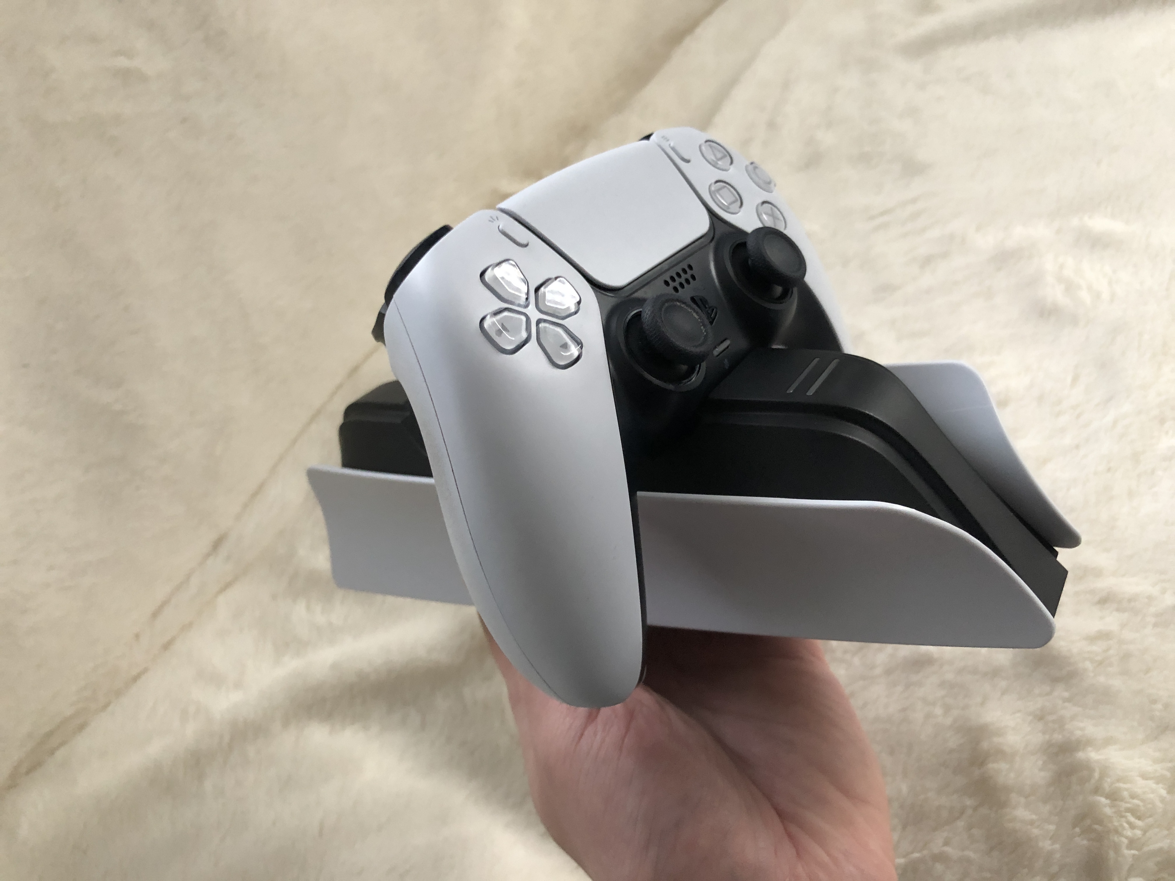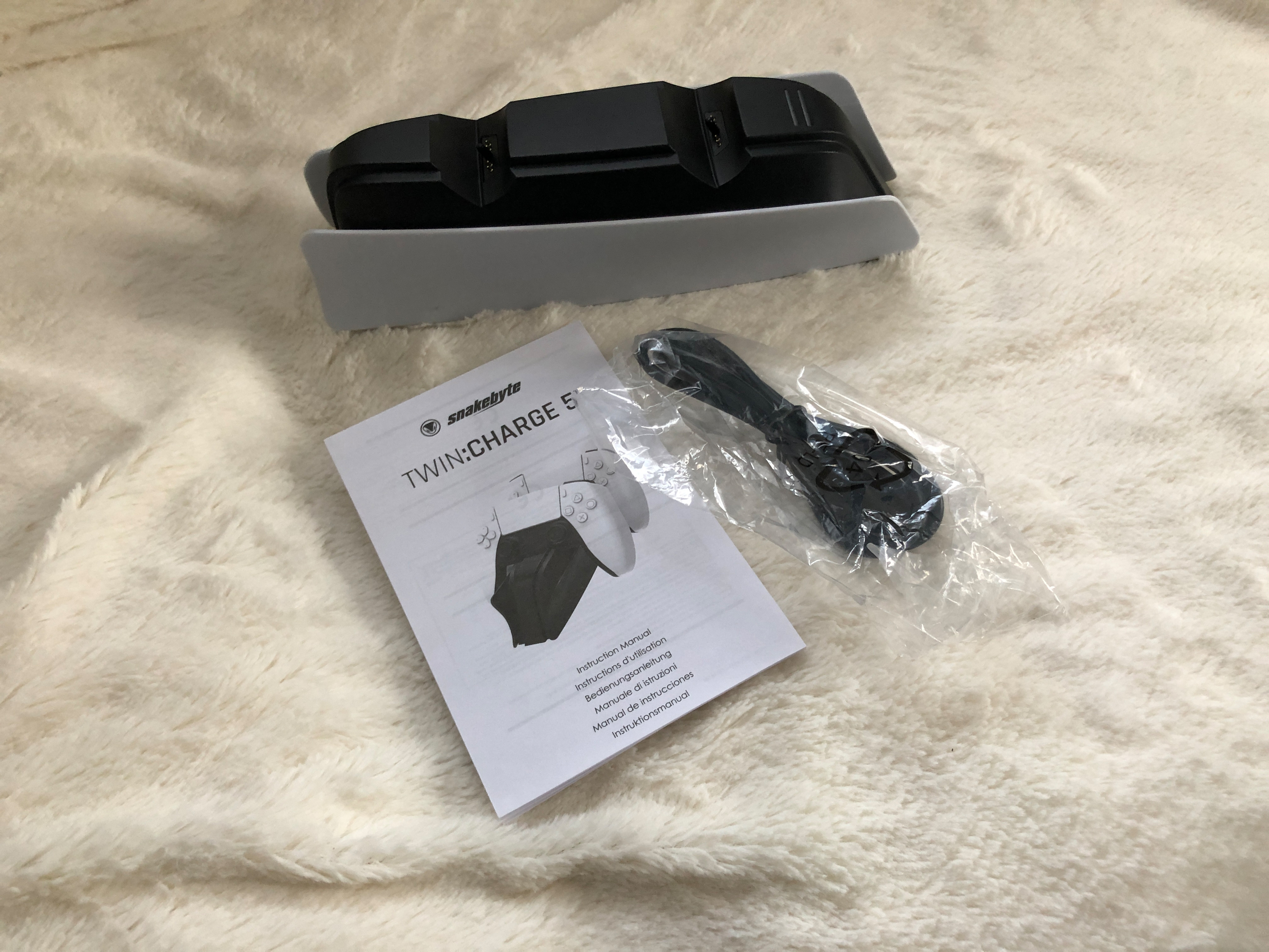 Bei der offiziellen Sony Variante, kann man die Ladestation nur an eine normale Steckdose hängen. Das hat Vor- aber auch Nachteile. Ich fand es anfangs eigentlich eher als Vorteil, da ich so die Ladestation auch auf dem Fensterbrett neben der Couch postieren könnte. Wenn man natürlich alles bei der PS5 Konsole haben möchte, ist das natürlich eher hinderlich. Die Twin:charge 5 schließt man direkt an die PS5 via USB an. Hier fehlt ein dedizierter Adapter, den man jedoch nachkaufen kann. Man muss lediglich beachten, dass die Leistungsaufnahme 5V / 1,5 A beträgt. Allerdings kostet das natürlich wieder Geld.