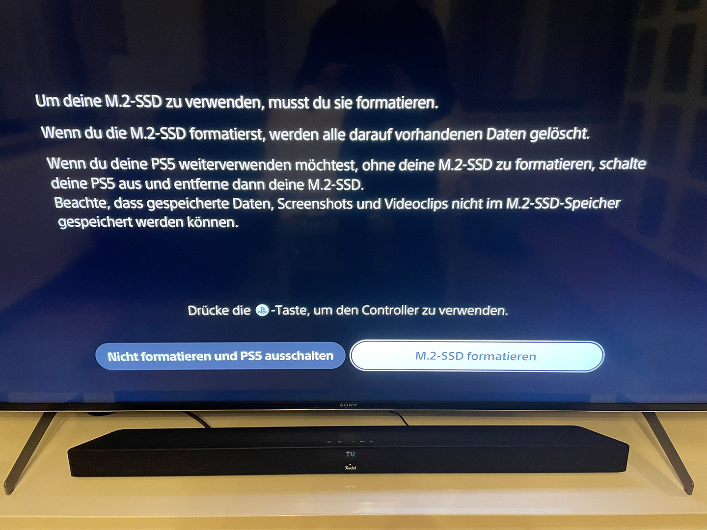 Und wenn ihe alles richtig gemacht habt, dann begrüßt euch die PS5 nach dem Einschalten mit folgender Meldung:
