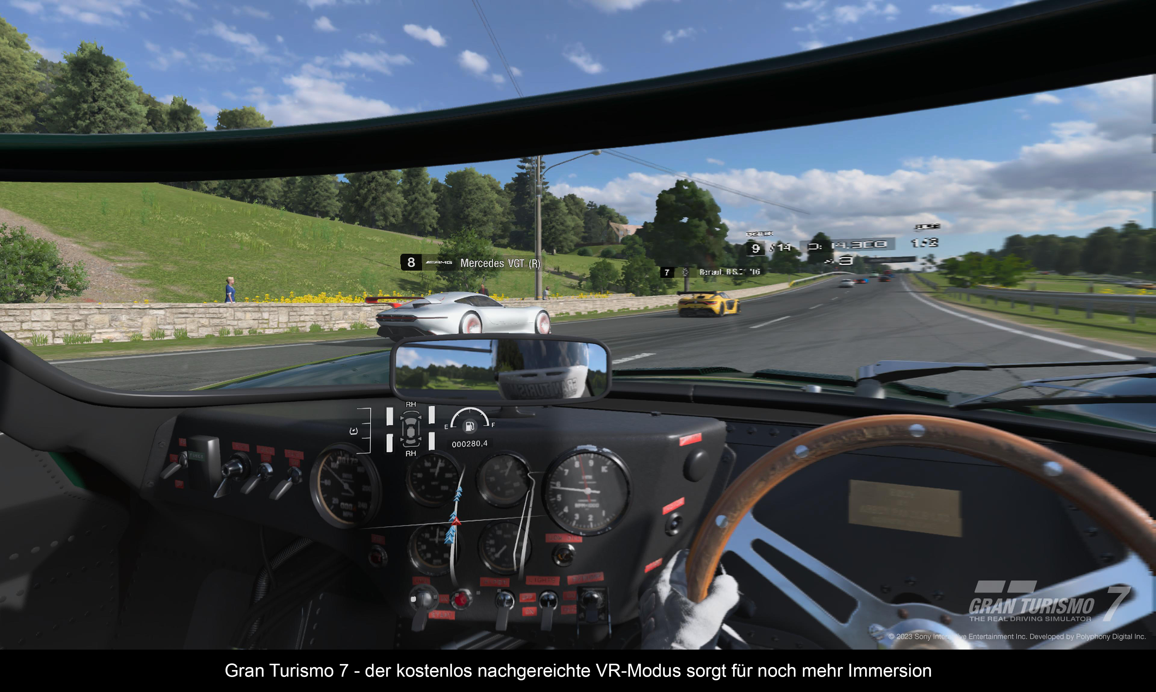 Das neue Headset trägt sich genauso komfortabel wie das Vorgängermodell und lässt sich genauso einfach aufsetzen. Das erneut ein Kabel am Helm baumelt, stört mich wenig. Vor allem, weil es mit über 4m ausreichend lang ist (unser Wohnzimmer ist 4,5x4,5m groß). Zu meckern habe ich am Komfort nur, das mein Steelseries Artic 7P nicht mehr so gut passt und dass man unter der PSVR2 bedeutend mehr schwitzt, als noch unter der ersten Brille. Auch die Anordnung der Knöpfe am Headset finde ich nicht optimal zu ertasten. Positiv ist wiederum, dass ich mit meiner großen Brille keine Probleme mit dem Sitz habe. Nichts verrutscht oder drückt. Technisch hat Kollege crack-king ja schon alles gesagt. Mich interessieren auch die ganzen technischen Schlagworte nicht. Nur kurz dazu, dass ich den Sweet Spot immer noch etwas zu klein finde. Letztendlich muss es für mich gut aussehen und funktionieren. Und holla die Waldfee, es funktioniert! Kennt man wie ich VR bereits, fällt der große "Wow!" Effekt zwar etwas weg, dennoch saß ich mit einem dicken Grinsen im Gesicht auf dem Sofa, als ich in Gran Turismo 7 ein Rennen gestartet habe. Die Grafik ist scharf, die Farben satt und das schwarz kräftig. Kein Vergleich zum erbärmlichen DriveClub VR mit seiner verwaschenen Grafik, die sofort für Übelkeit sorgte. Beim spielbaren Intro von Horizon: Call of the Mountain fiel dann auch schon Mal die Kinnlade runter. Der Detailgrad ist locker PS4 Niveau, wenngleich dies durch Schlauchiges Levelbuilding erkauft wird. Die Vegetation und die Liebe zum Detail bei den Maschinen rocken! Im Spiel selbst kann man eine automatische Fahrt in einem Paddelboot machen, wo links und rechts Maschinen auftauchen und sich auch Mal bekämpfen und ganz nah rankommen. Alter Falter… sorry für die plakative Ausdrucksweise. Einfach nur FETT!
