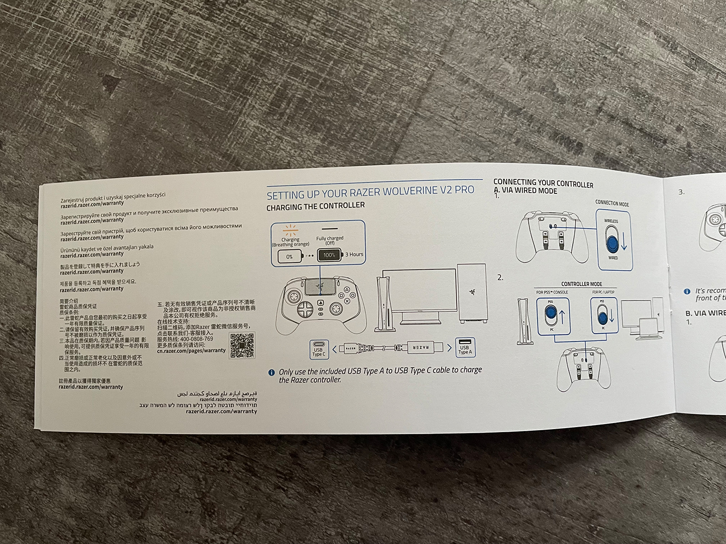 Keine Frage, der Controller ist definitiv hochwertig verarbeitet. Er fasst sich gut an (vor allem dank der texturierten Griffe), die Trigger haben kurze Wege, die Sticks driften nicht und lassen sich präzise bedienen (kein billiger Plastikmist) und die Tasten (auch das Touchpad) machen wirklich nette Klick-Geräusche. Insgesamt - von der reinen Verarbeitungsqualität her – liegen da schon Welten zwischen dem Wolverine V2 Pro und einem DualSense Controller. Der Energieverbrauch geht in Ordnung. Maximal 28 Stunden sind ohne RGB Farben drin. Dabei darf man aber nicht außer Acht lassen, dass es hier keinerlei haptische Funktionen gibt, die Strom ziehen. Lediglich die Chroma RGB Farben kann man aktivieren und dann bleiben gerade noch 10 Stunden Laufzeit übrig, was keine Glanzleistung darstellt. Am Ende ist natürlich auch die Frage nach dem Garantiezeitraum nicht verkehrt. Razer verspricht ein Jahr Garantie – klingt jetzt nicht unbedingt viel (mehr) als andere Hersteller anbieten.