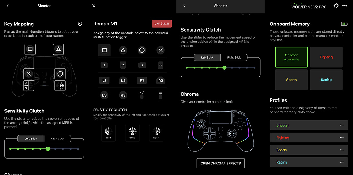 Zum Programmieren der Multifunktionstasten braucht man eine gesonderte IOS oder Android App. Über diese App kann man neben Tastenzuweisungen auch noch die Chroma RGB Farben ändern, oder um Akkuleistung zu sparen, auch ganz ausschalten. Der Chroma-Effekt ist übrigens nicht mit anderen Chroma RGB Geräten von Razer auf dem PC kompatibel. Auch auf dem Rechenknecht gibt es diverse Razer Programme, aber um die Tasten zuzuweisen, braucht man wiederum die Handy App. Für Firmware Updates wird dann jedoch ein PC benötigt. Alles in allem, gewöhnungsbedürftig, manchmal umständlich aber immer noch machbar. Und zumindest hat bei mir alles einwandfrei funktioniert.