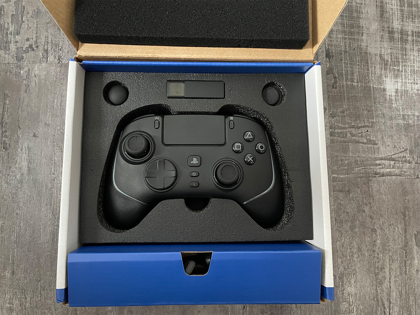 Das Stick-Layout der PlayStation Controller geht bis auf den ersten DualShock Controller für die PS1 zurück. Schon immer gab es zwei symmetrische Sticks und etwas weiter weg waren das Steuerkreuz bzw. die Face-Buttons platziert. Nun kann man dazu stehen, wie man will. Ich wuchs damit auf und komme damit auch problemlos zurecht, allerdings war nicht jede Generation auch toll. Der DualShock 3 stellt bis heute den miesesten PlayStation Controller da. Der aktuelle DualSense Controller behält zwar auch dieses Layout bei, bietet aber eine wesentlich griffigere Form. Microsofts Xbox setzte dagegen schon immer auf ein asymmetrisches Layout bei den Controllern. Statt des Steuerkreuzes fand man dort immer den linken Stick. Das bot vor allem bei Ego-Shootern und Rennspielen einen Vorteil. Bei anderen Genres allerdings auch Nachteile. Der Wolverine V2 Pro adaptiert das Xbox-Layout und liegt dementsprechend auch gut in der Hand. Auf der Rückseite befinden sich noch zwei Paddels, welche ebenfalls mit den Fingern gut erreichbar sind, sowie zwei kleinere Multifunktionstasten. Die beiden zusätzlichen Multifunktionstasten oben neben den R/L Tasten sind ebenfalls ohne weiteres zu bedienen. Was jedoch ein netter Pluspunkt ist: Die Hypertrigger kann man auf zwei Arten betreiben. Entweder mit großem Durchzug (also normal), oder eher als Tasten mit minimalem Druckpunkt. Das wird einfach via Schieberegler am Controller eingestellt. Apropos mit solchen kleinen Helfern wechselt man am Controller auch vom Kabelmodus zum Wireless Modus und vom PS5 zum PC-Modus. Denn der Wolverine V2 Pro kann nicht nur an der Konsole betrieben werden, sondern auch am Gaming-PC. Wobei mittlerweile ja auch der DualSense nativ am PC betrieben werden kann. Ein Pluspunkt gegenüber dem PlayStation-Controller: Die Stickaufsätze können gewechselt werden und man bekommt insgesamt 4 Stück mitgeliefert. Drei besitzen eine konkave Wölbung und einer eine Konvexe. Diese Kappe ist auch etwas kürzer. Bei der Qualitätsanmutung kann man jedenfalls nichts bemängeln. Ansonsten gibt es noch ein Touchpad und einen 3,5mm Klinkenanschluss für Headsets.