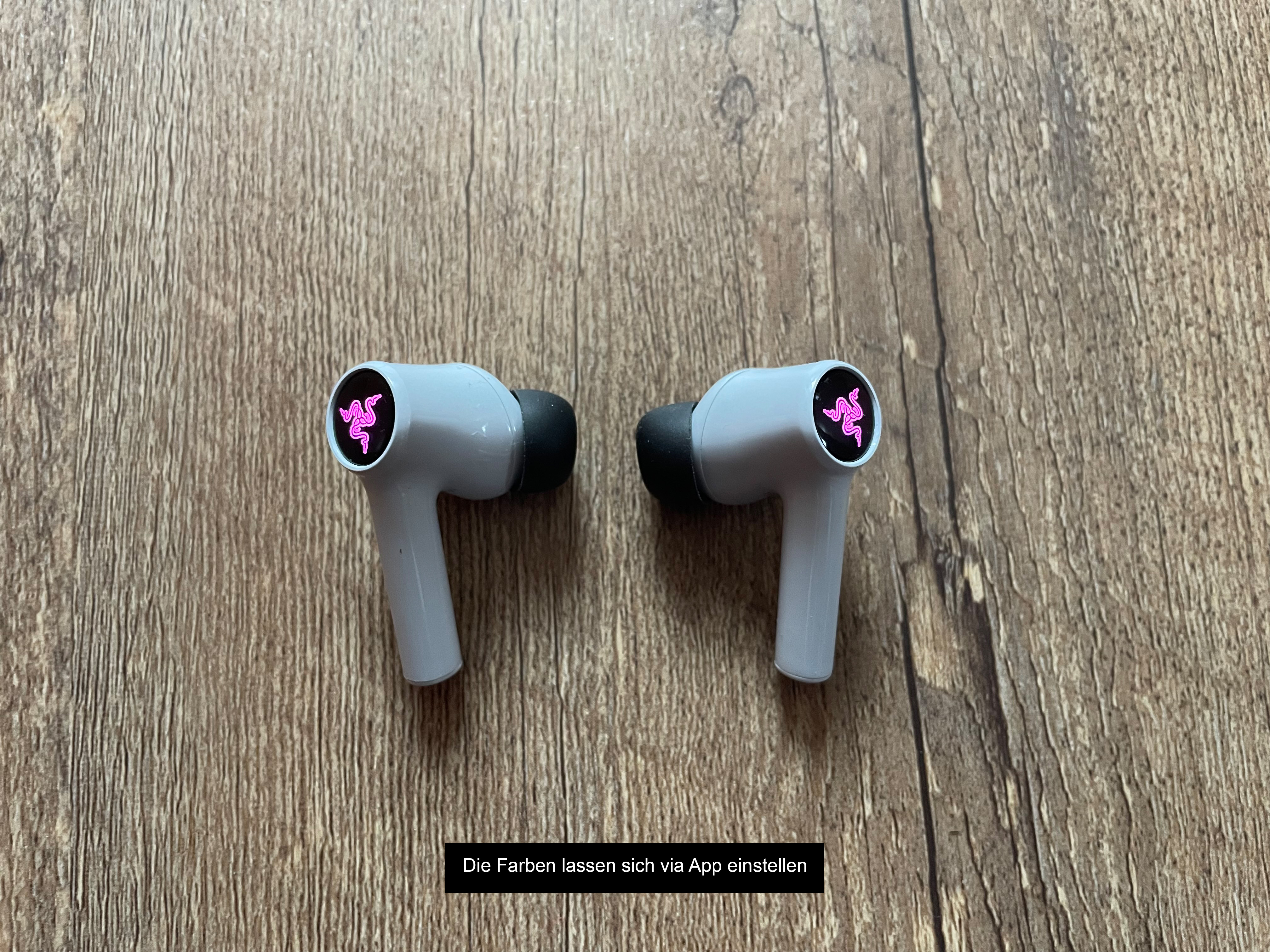 Kommen wir zur eigentlichen Soundqualität. Diese ist schlichtweg super! Alles wird glasklar und räumlich wiedergegeben. Egal ob Sprache oder Effekte, man ist immer mittendrin und bekommt selbst die kleinsten Feinheiten mit. Aber auch Musik wird anstandslos und in einem warmen Ton abgespielt. Auch sitzen die Earbuds perfekt in den Ohren. Weder das (geringe) Gewicht fällt auf, noch machen sich die Geräte anderweitig negativ bemerkbar. Im Paket finden sich auch noch weitere Größen für die Silikonausätze, weshalb für jeden etwas dabei sein sollte. Gesteuert wird mittels Gesten, so funktioniert das Umschalten der Verbindungsmodi mittels 3x Klopfen auf das Razer-Logo. Wirklich ausgereift ist das jedoch nicht – schließlich geht es manchmal und manchmal eben nicht. Vor allem nach den Verbindungsabbrüchen. Doch dazu komme ich gleich…