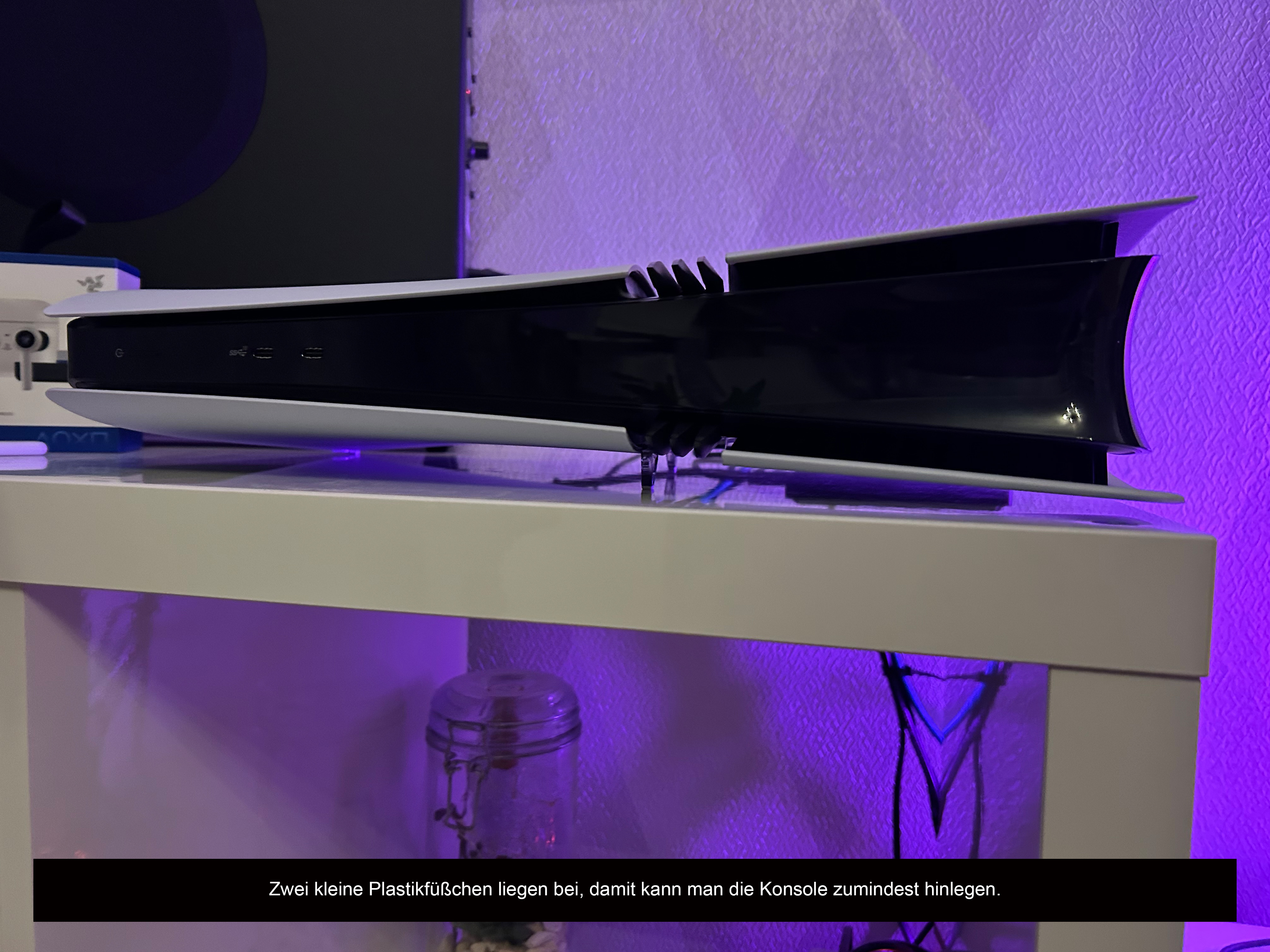 Fangen wir gleich mit dem wichtigsten Punkt an, dem Preis: Dieser beträgt doppelt so viel wie der einer regulären PS5 Konsole. 799,99€ ruft Sony für die neue Konsole auf – wesentlich mehr, als zum Beispiel die 399,99€ für die PS4 Pro! Oder falls sich noch jemand erinnert, der absurde Preis der PS3 – 599,99€! Zu Recht fuhr der Hersteller dafür Spott, Häme und anfangs schlechte Verkaufszahlen ein. Doch wie heißt es so schön? Aus der Geschichte lernt man etwas, oder eben auch nicht. Für Sony, ein multinationaler Konzern, trifft wohl letzteres zu und das Motto „For the Players“ ist längst zur Charade verkommen. Mit der PS5 Pro wird man jedenfalls nicht das Gefühl los, bis auf den letzten Pfennig ausgequetscht zu werden. Warum? Für die rund 800€ bekommt man nicht einmal ein Disc-Laufwerk dazu. Auch einen einfachen Standfuß zum Hinstellen gibt es nicht dazu! Man kann die Konsole nur hinlegen (dafür gibt es zwei kleine Plastikfüßchen, die bestenfalls in der Produktion 1 Cent gekostet haben), was aber mehr Platz in Anspruch nimmt. Hinstellen sollte man sie ohne Fuß nicht, schließlich gibt es auch auf der Unterseite Luftauslassgitter, welche für die Zirkulation der Abwärme wichtig sind. Wer jetzt denkt, einfach von seiner alten PS5 den Standfuß zu nutzen, kennt Sony nicht – natürlich sind nur die Ständer der neueren Slim-Modelle kompatibel. Vielen Dank auch! Ähnlich sieht es auch beim Disc-Laufwerk aus, dass man optional erwerben kann – für schlappe 130€, wenn es denn irgendwo verfügbar ist. Für den Standfuß will Sony übrigens auch noch mal 30€ haben. In Summe macht das dann rund 960€! Dafür bekommt man fast drei einzelne PS5 Konsolen oder bereits einen guten Mittelklasse Gaming PC.