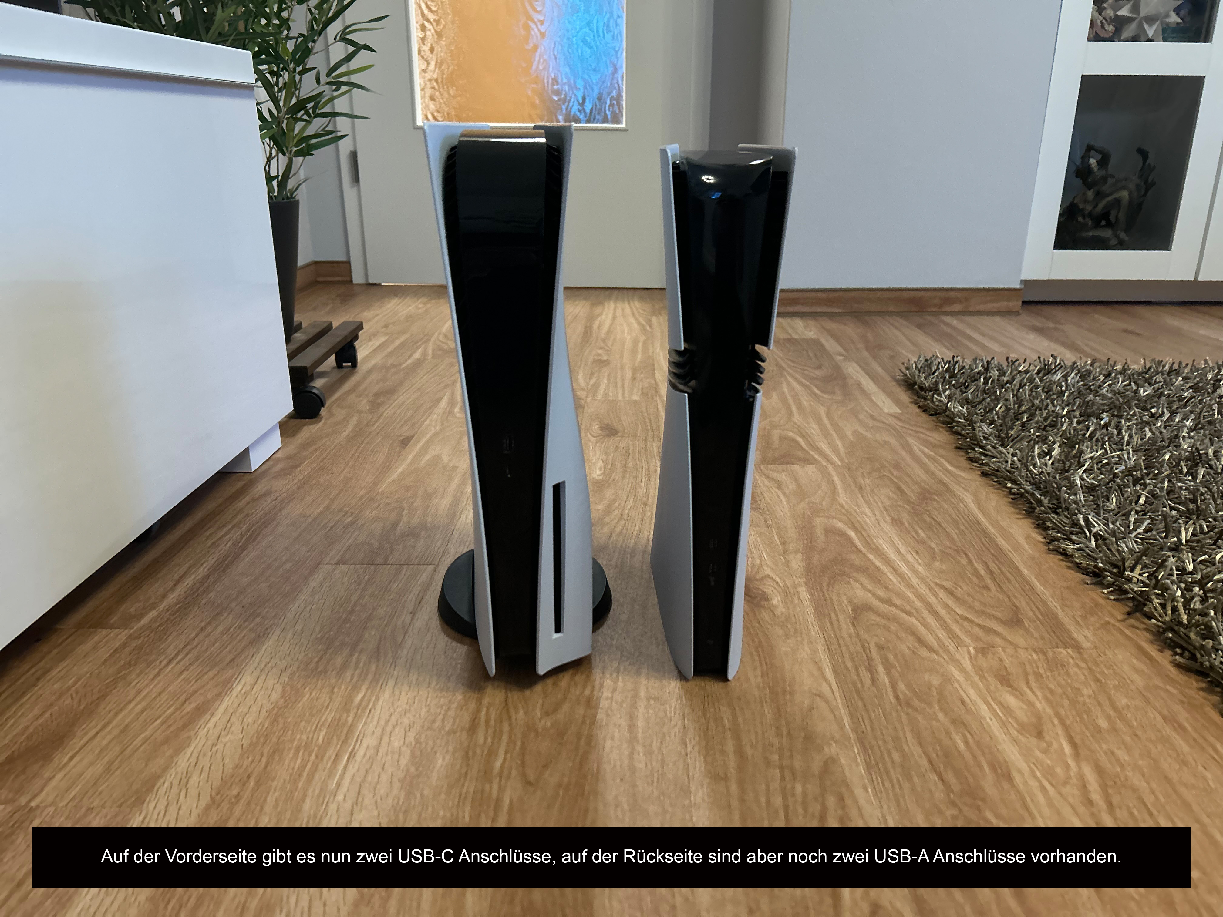 Ansonsten gibt es an der Vorderseite zwei USB-C Anschlüsse (bislang waren es nur 1x USB C und einmal USB A). Das verwendete Hochglanzplastik ist aber genauso kratzempfindlich wie bisher.