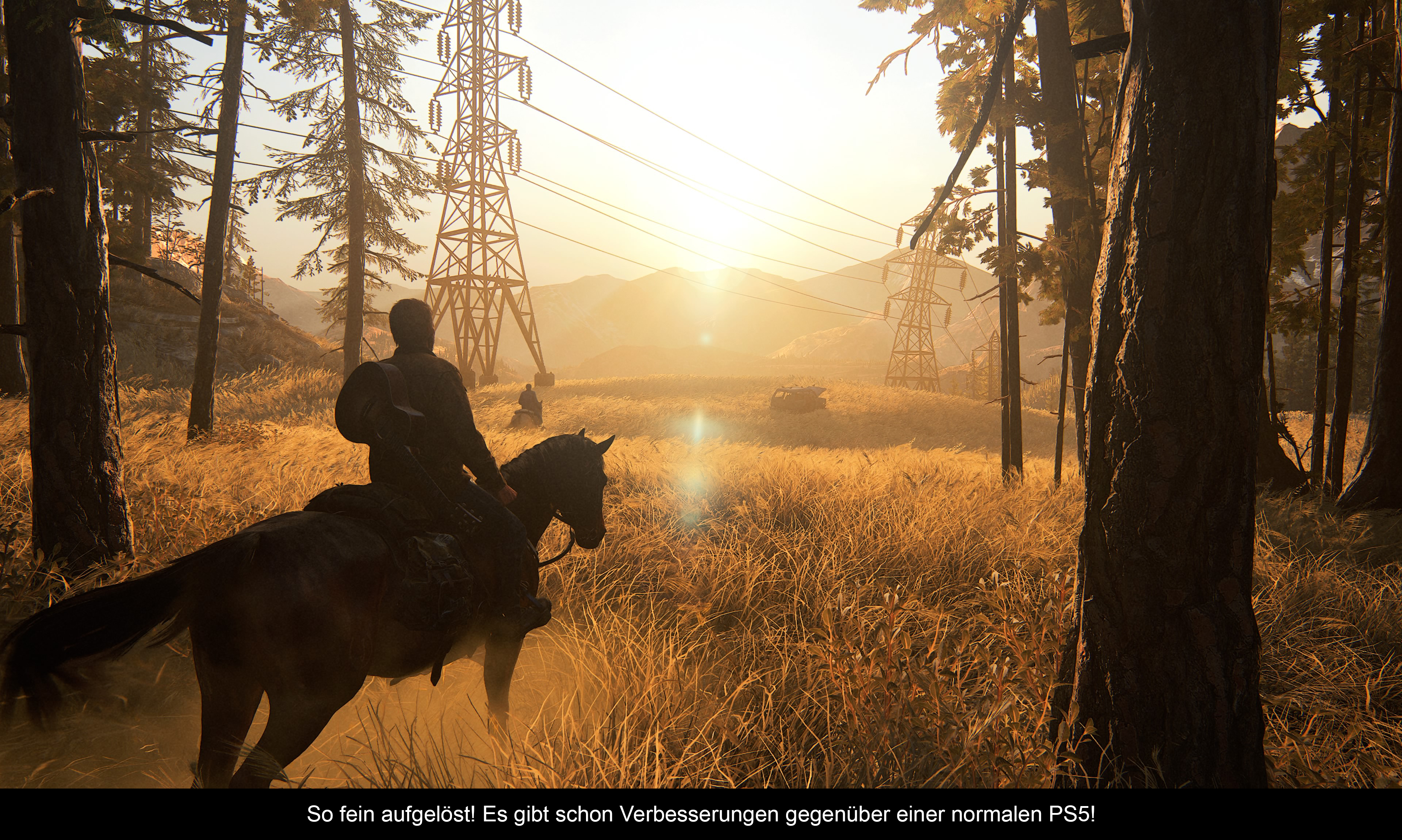 Naughty Dog zum Zweiten. Auch hier sah das PS5 Remaster bereits toll aus (und lief ebenfalls sauber mit 60fps – über den 30fps Modus will ich mal lieber keine Worte verlieren. Ha, selbst auf der PS4 Pro machte der Titel eine grandiose Figur. Nun, wie sieht es auf der PS5 Pro aus? Hier hält ein neuer Modus Einzug, bei dem der Titel intern mit 1440p gerendert wird und dann durch PSSR auf 4K hochskaliert wird. Und das bei 60fps. Im Ergebnis sieht das Bild nochmal einen Tick feiner aus.