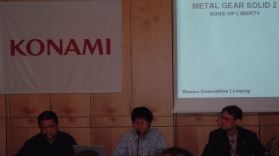 Martin Schneider, European Marketing und PR Director und Wolfgang Ebert, European PR Manager, zeigten den anwesenden Journalisten das Line-Up für das Jahr 2004 und 2005. Dabei wurde weltexklusiv der Taktik-Online-Shooter The Regiment angekündigt. Das absolute Highlight kam jedoch in Form eines Halbgottes: Hideo Kojima betrat zusammen mit seinem Übersetzer Scott Dolph den Raum und stellte sein neuestes Projekt Metal Gear Solid 3: Snake Eater vor. Wahnsinn!