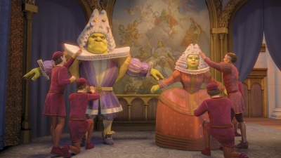 Man merkt deutlich, dass die Story ausgelutscht ist. Dies ist wohl auch dem Team rund um Katzenberg mittlerweile bekannt, denn die beiden folgenden Filme werden Prequels sein. Die Story schleppt sich ohne nennenswerte Höhepunkte voran und auch die Originalität der Witze bleibt fast immer auf der Strecke. Zwar gibt es hie und da mit einigen Seitenhieben auf Disney ein paar Highlights und auch die Popkultur bekommt ihr Fett weg, doch sind diese Seitenhiebe bei weitem nicht mehr so bissig wie in den beiden Vorgängern. Der Oger mutierte zu einem lieben und braven Schoßtier und auch seine beiden Sidekicks Esel und der gestiefelte Kater schlagen jetzt eher sanftere Töne an. Es fehlt deutlich an Spritzigkeit und auch die Weiterentwicklung der bekannten Charaktere bleibt auf der Strecke. Selbst die neuen Figuren wie Artus und Merlin bleiben recht blas.