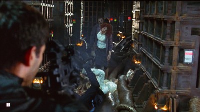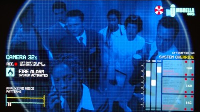 Zombiefilme gibt es ja nicht gerade wie Sand am Meer, weshalb man immer ganz froh über einen neuen Film ist. Das die Story dabei nicht sonderlich anspruchsvoll klingt, lässt sich da noch eher verschmerzen. Immerhin gibt man bei Filmen dieses Genre eh das Gehirn am Schalter ab. Nach einem wirklich guten und vielversprechenden Anfang, bekommt der geneigte Zombie- und Actionfan allerdings mehr als nur einmal ein Déjàvu zu sehen. Alles ist irgendwie zusammengeklaut, doch dabei mehr schlecht als recht kopiert. Hat man sich den Film dann bis zum Ende gegeben, fällt zudem noch auf, dass irgendetwas fehlte. Genau! Wo war eigentlich der Splatter die ganze Zeit? Immerhin handelt es sich ja um Resident Evil und nicht ein Silent Hill. Somit sollten auch deftige Splattereinlagen enthalten sein. Doch dank FSK 16 wird steht’s weggeblendet, wenn es ernst wird und bis auf ein paar Genickbrüche ist nicht zu sehen! Das sorgt natürlich auch für Abzüge bei der Atmosphäre, wobei man dieser dann doch noch ein paar positive Sachen anrechnen kann. So wurden viele Kamerawinkel eingesetzt, wie man sie schon aus der Videospielvorlage kennt und hätte das Potential auf ein paar Spannende Elemente gehabt.
