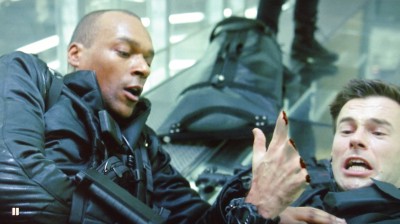 Das nächste was wirklich nervt sind die Dialoge, wobei Dialoge schon übertrieben sind. Vielmehr sollte man von Wortfetzen reden. Durch die recht unterirdische deutsche Syncro gibt es recht viele Szenen, welche unfreiwillig komisch geraten sind. Falls es dann doch mal Sätze zu hören gibt, bekommt man allerhand dämliches zu hören. Besonders Frau Rodriguez schießt mehr als einmal den Vogel ab! Neben miesen „Dialogen“ gibt es auch recht unterdurchschnittliche schauspielerische Leistungen zu bestaunen. Milla läuft recht emotionslos durch die Gegend, Michelle Rodriguez gibt den Proleten schlechthin wo jeder männliche Söldner neidisch wäre und die Männer Eric Mabius und James Purefoy stehen meist regungslos irgendwo in der Gegend rum. Sollen doch die Weiber nur machen scheinen sie sagen zu wollen. Wirklich überrascht hat mich hier noch Heike Makatsch, welche mit ihrer Screentime noch am meisten überzeugen konnte. Das einzig wirklich gute ist die Techno/Metal Mucke von Marilyn Manson. Anfangs ist man zwar etwas skeptisch, doch letztendlich passte der Soundtrack recht gut und wertete etliche Szenen gehörig auf.