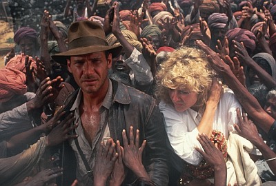 In „Der Tempel des Todes" verschlägt es Indy im zweiten Teil mit seinen kleinen Freund Short Round (Jonathan Ke Quan) und der Tänzerin Willie Scott (Kate Capshaw) nach Indien. Dort bekommen sie es mit den mysteriösen Sankara-Steinen und einer boshaften indischen Sekte zu tun, die alle Kinder aus den umliegenden Dörfern entführt und zur Sklavenarbeit verpflichtet haben. Das zweite Abenteuer hob sich dabei von den anderen Teilen etwas ab, da es hier um einiges düsterer zuging und der Humor zurückgeschraubt wurde. Zudem übernahmen dieses Mal nicht die Nazis den Gegenpart. Dadurch erhielt „Der Tempel des Todes“ auch als einziger Teil der Reihe eine FSK 16 Einstufung. Für viele nach dem vierten Abenteuer der schlechteste Indy Teil, aber selbst ein schlechter Spielberg ist noch immer ein guter Film. So bietet auch dieser Ausflug mit der spaßigen Eröffnungssequenz und der spektakulären Lorenfahrt denkwürdige Actionszenen.