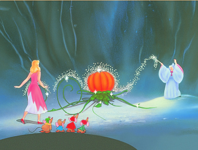 Disney's Version von Aschenputtel ist voll auf Erfolg getrimmt. Man nehme eine klischeebehaftetes Frauenbild in Not, fiese Gegenspielerinnen und einen knackigen Prinzen. Welches Mädchen kann bei solch einer Konstellation widerstehen? Damit man auch gleich weiß, was Sache ist, sind Cinderella, der Prinz und die fiese Stiefmutter die einzigen drei Charaktere, welche ein realistisches Aussehen besitzen. Alle anderen wurden teils stark überzeichnete. Aber auch die Hintergründe, welche aus der Feder der Künstlerin Mary Blair stammen heben sich ab. Diese wurden nämlich sehr einfach gehalten und sind weit von den pompösen Backgrounds von Schneewittchen und vor allen eines Pinocchio entfernt! Hier schlug wohl der rote Stift zu, da diese einfachen Hintergründe günstiger waren. Begeistern können dagegen die Animationen, welche butterweich und elegant sind. Natürlich darf auch wieder geträllert werden, wobei die Texte teils nicht klar verständlich sind. Komponiert sind sie jedoch sehr gut.