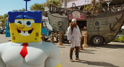 Die Story ist natürlich absoluter Humbug und dient nur, um den Film wenigsten einen kleinen roten Faden mit auf den Weg zu geben. Spongebob glänzte schon immer mehr durch diversen Nonsens und Seitenhieben auf die Popkultur. Mittels der Zeitmaschine können die Macher sogar noch mehr Unsinn treiben und gehen noch mehr an die Grenzen des Vertragbaren. Wo sonst trifft man auf einen Weltraum Delfin, der Jahrhundertlang darauf aufpasst, dass zwei Planeten sich nicht vom Fleck wegbewegen. Und das ohne auch nur einen Toilettengang! Zum Glück schaut aber gerade Spongebob um die Ecke, wobei Glück wohl etwas übertrieben ist.
