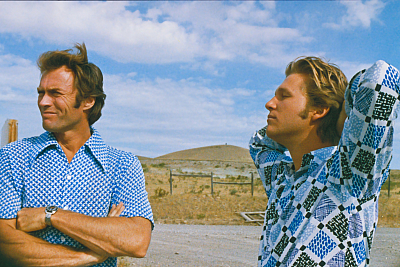 Roadmovies sind die konsequente Weiterführung des Westerns und wohl eines der amerikanisten Genre. Es geht um Freiheit, Selbstfindung und die Straße als Sinnbild für den Lebensweg. In den wirren des Vietnamkrieges sprossen etliche solcher Roadmovies aus dem Boden. Angefangen von Klassikern wie “Easy Rider” und “Fluchtpunkt San Francisco” über das Regiedebüt “Duell” von Steven Spielberg und Sam Peckinpahs grandiosen “The Gateway”. In die “Die letzten beissen die Hunde” kreuzen sich sprichwörtlich die Wege von Thunderbolt (Eastwood) und Lightfood (Bridges). Während sich der Taugenichts Lightfood von einem Kleinverbrechen zum nächsten hangelt, ist Thunderbolt bereits ein berüchtigter Bankräuber, der mit neuer Identität nur darauf wartet, die Beute seines letzten Raubzuges aus seinem Versteck zu fischen. Während Thunderbolt anfangs kein großes Interesse an einer Partnerschaft hat, lässt Lightfood jedoch nicht locker und beide freunden sich doch noch zunehmends an. Obwohl der Film im Prinzip nur mit Eastwood vermarktet wurde, ist Bridges im Film gleichwertig in Szene gesetzt und bekommt die gleiche Srceentime zugesprochen. Dies ist sehr zuträglich für die Chemie zwischen den Beiden, welche von der ersten Sekunde an stimmt. Während Bridges eher für die Leichtfüßigkeit und die Gags verantwortlich ist, gibt Eastwood eher den wortkargen, wenngleich er nie in in die Rollen seiner Westernausflüge oder “Dirty Harry” fällt.