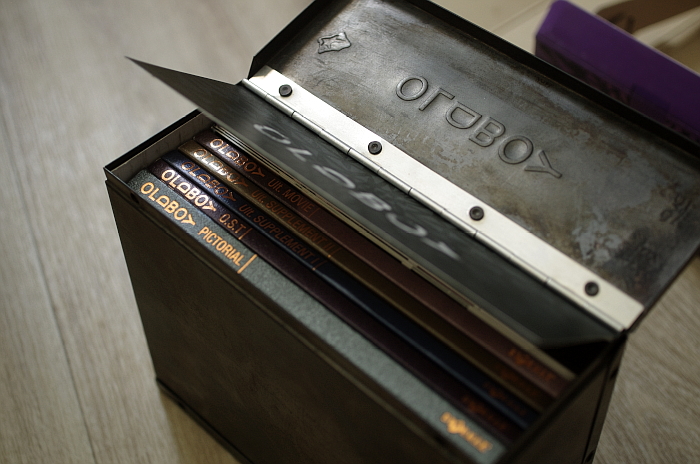 Ein grandioser Film braucht natürlich auch eine ansprechende Verpackung und Old Boy lässt sich da keineswegs lumpen. Nicht nur, dass die normale 2er DVD Edition im edlen Schuber mit zwei Digipacks im Inneren daherkommt, nein, die Ultimate Edition schaut umwerfend aus und besteht zudem aus Kupfer und ist handgemacht! Das Teil ist schwer ohne Ende und auf 2000 Stück limitiert. Ich habe übrigens die Nr. 0861 eingestanzt. In dieser Box befinden sich 4 Digipacks mit Film, Soundtrack und 2 DVD’s inkl. Extras. Dazu gibt es noch 3 Filmschnipsel von den drei Hauptdarstellern und ein 80 seitiges Photobuch sowie ein Sketchbook mit dem kompletten Film als Storyboard. Die Box ist nebenbei noch in einen Geschenkkarton eingepackt, aus der Dae-Su im Film u.a. die Wahrheit erfährt.