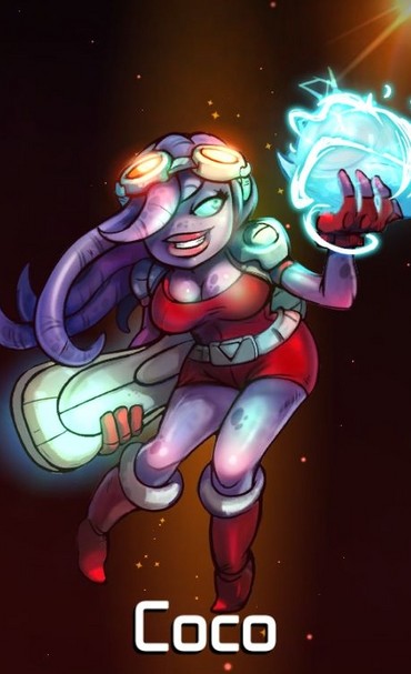 Hailing from a psyonic race on Okeanos, Coco is known as the cosmic waveblazer. Describes herself as hot & cool at the same time.