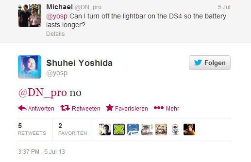 Dieses Hardwarefeature kann übrigens nicht abgeschalten werden. Das gab eine Anfrage via Twitter an Shuhei Yoshida preiss. Für Besitzer von verspiegelten TV Geräten ist das eine weniger positive Nachricht.