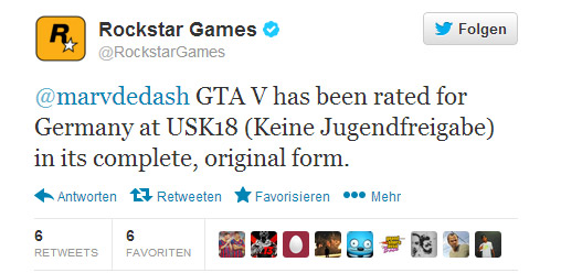 Rockstar Games hat soeben über Twitter bekannt gegeben, dass Grand Theft Auto V von der USK mit einer "ab 18" Freigabe eingestuft wurde. Und zwar ohne Änderungen gegenüber der internationalen Fassung!