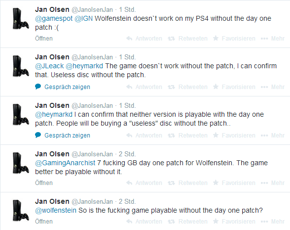 Per Twitter kam nun heraus, dass Wolfenstein: The New Order einen Day-One Patch erhalten hat, der gleich ganze 5GB groß ist. Infos zu den Änderungen gibt es aber nicht.