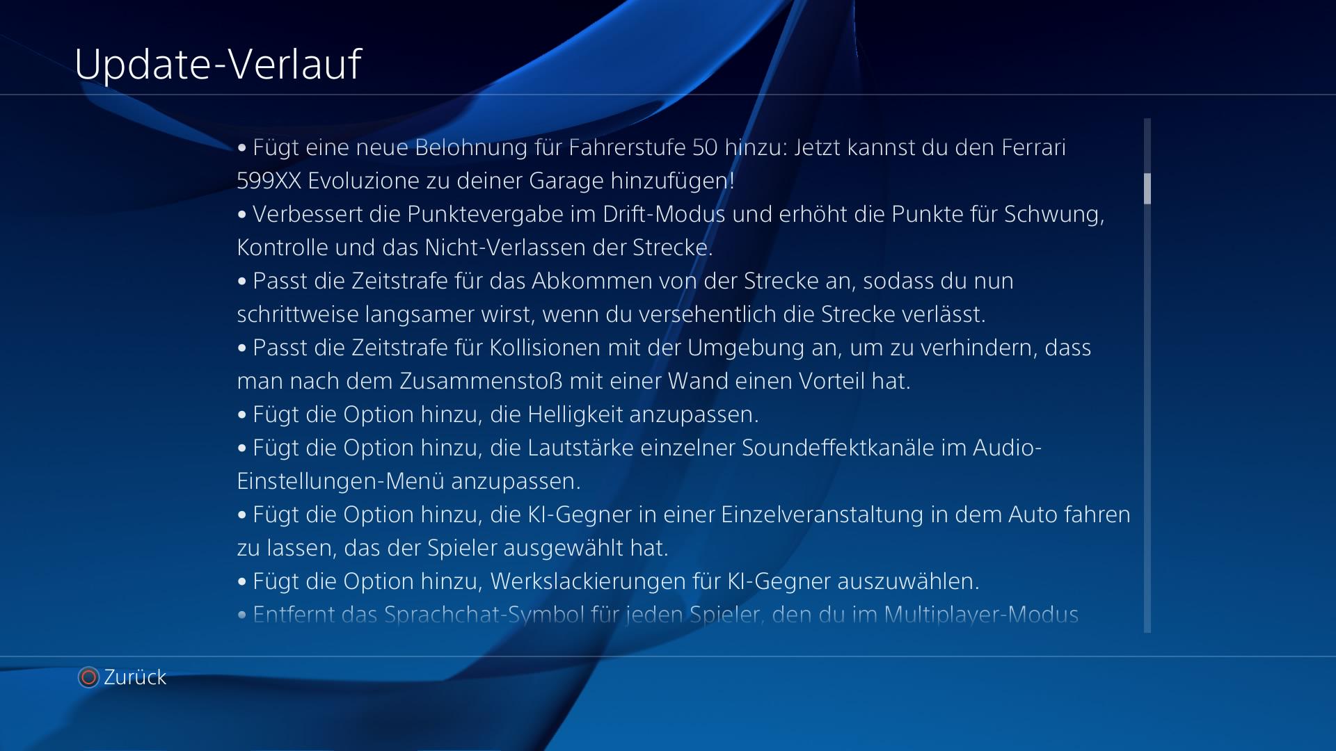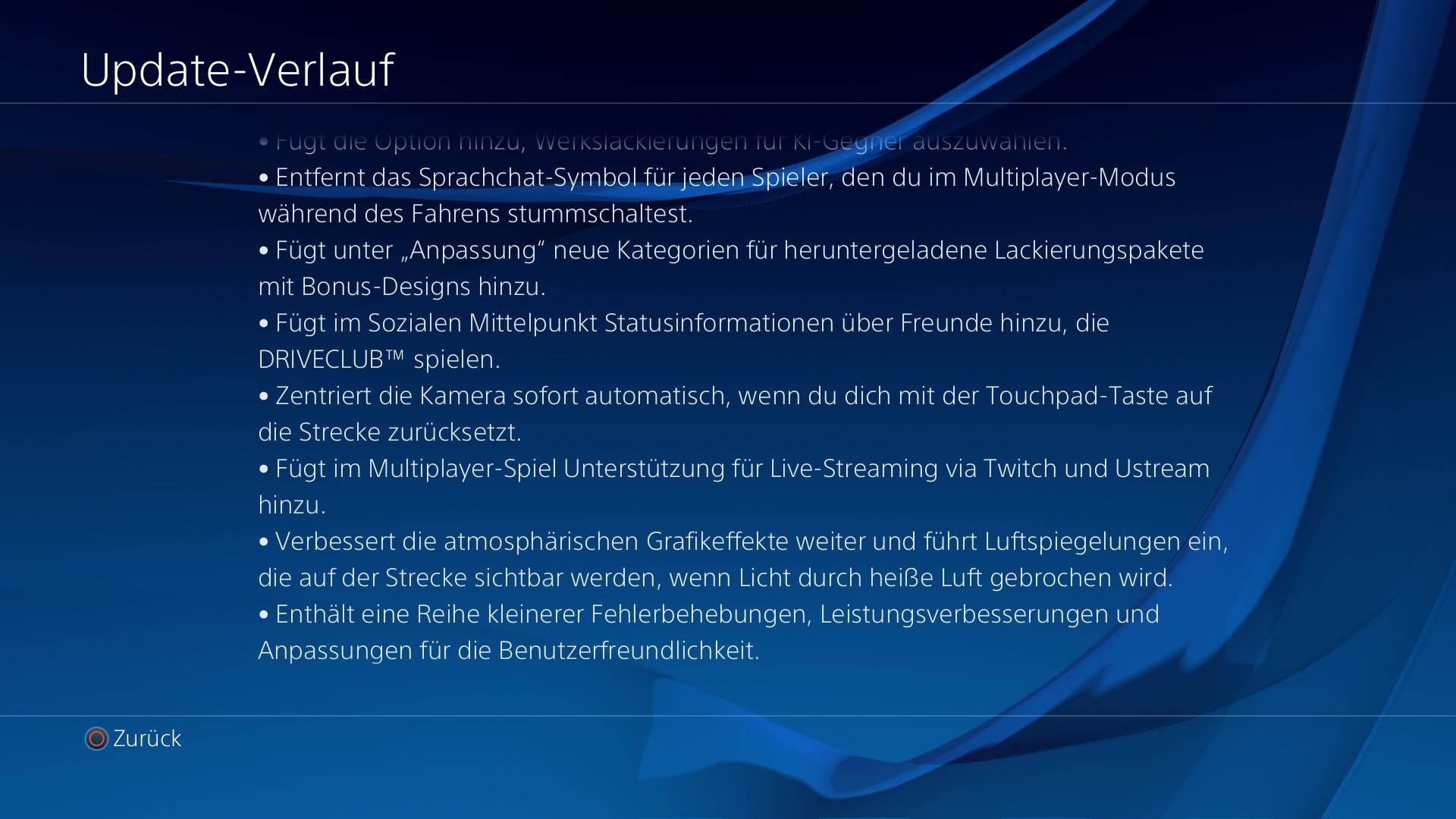 Mit Update 1.12 für Driveclub kommen endlich die Replays. Nach jedem Rennen erhaltet ihr jetzt die Möglichkeit ein bis zu 10 Minuten langes Replay des Rennens abzuspeichern. Dies gilt vorerst aber nur für die Singleplayerevents. Im Multiplayer gibt es (noch) keine Replays. Zudem erhalten Spieler mit Level 50 Zugang zum Ferrari 599XX Evoluzione.