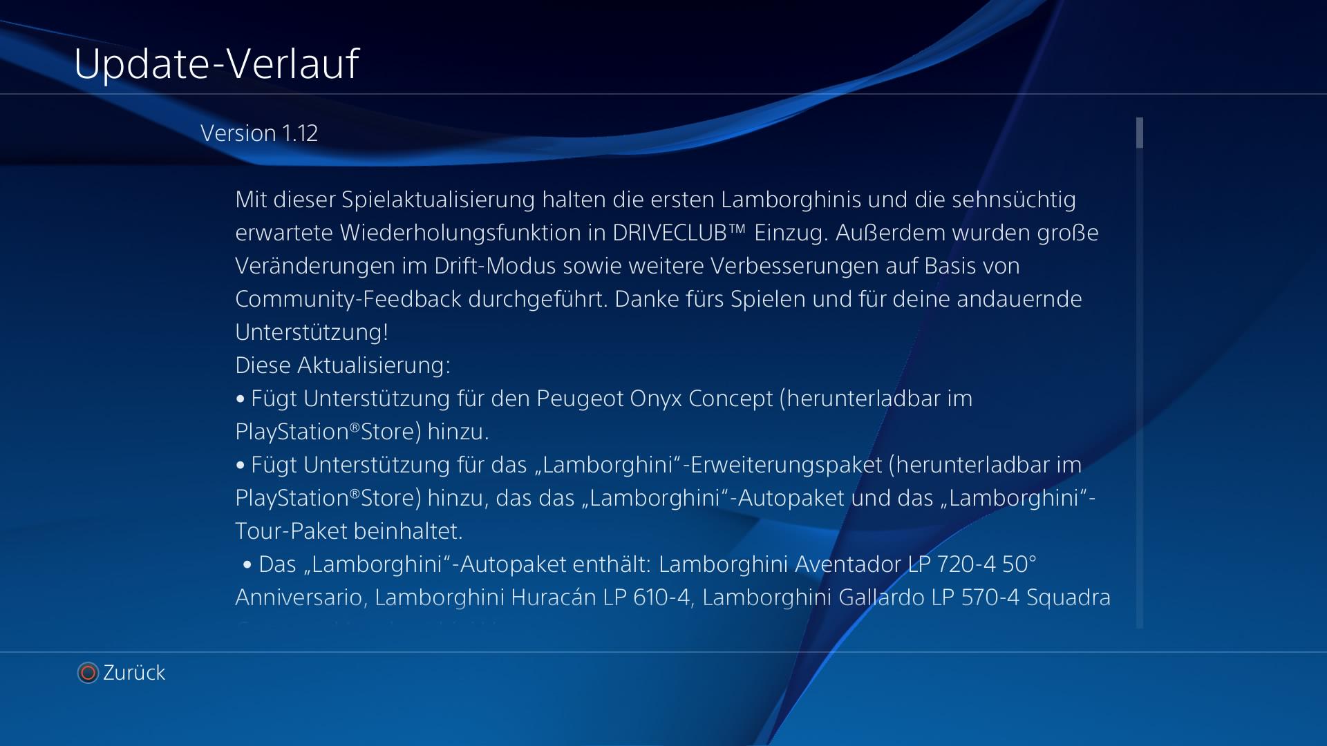 Außerdem bereitet das Update Driveclub auf die nächste Woche erscheinenden DLCs mit neuen Rennen, Lackierungen und Fahrzeugen von Lamborghini.