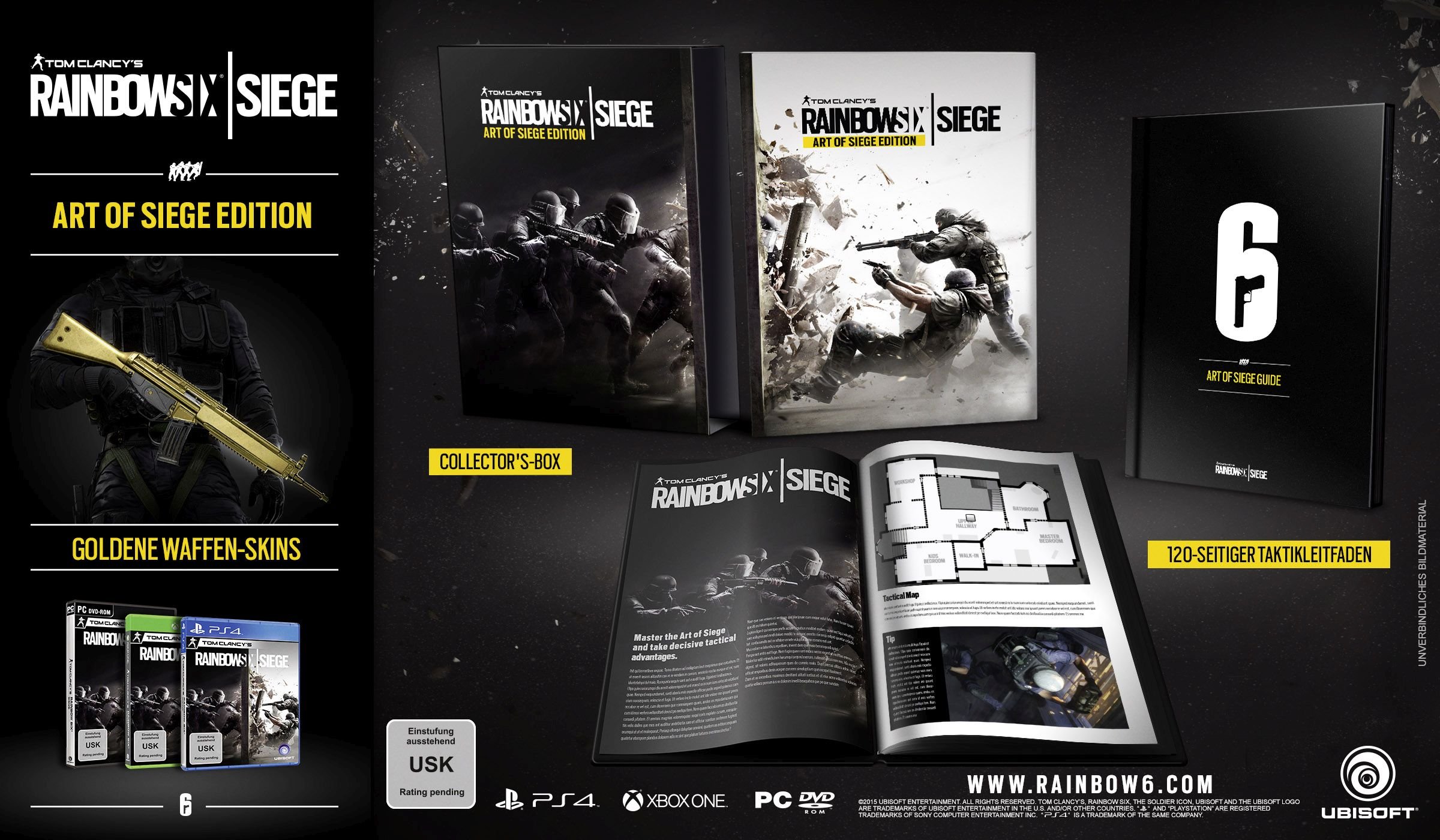 Ubisoft gab heute bekannt, dass man zu Tom Clancy’s Rainbow Six Siege auch eine Collector’s Edition namens „Art of Siege“ anbieten wird. Sie beinhaltet das Spiel, eine Collector’s Box, ein Pack mit goldenen Waffenskins für alle Ingame-Waffen und einen exklusiven 120-seitigen Taktikleitfaden. Dieser hochwertige Leitfaden befasst sich mit allen Kernelementen des Spiels. Er enthält eine ausführliche Beschreibung jeder Antiterroreinheit, der Spezialisten, der Waffen und Karten mit hochdetaillierten Übersichten und Statistiken. Alle diese Inhalte wurden gemeinsam mit dem Entwicklerteam unter Mithilfe von Hardcore-Gamern zusammengestellt, um Spieler bestmöglich auf ihre Matches vorzubereiten.