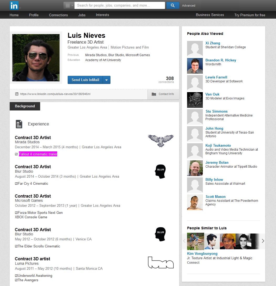 Dieses Jahr hält Bethesda erstmals eine eigene Pressekonferenz auf der E3 ab und die Fans erhoffen sich in erster Linie ein neues Fallout Spiel. Vielleicht bekommen die Fans auch, was sie wollen. Denn Luis Nieves, Freelancer 3D Artist, hat laut seinem LinkedIn Profil die letzten vier Monate seit März bei Mirada Studios an einem Fallout 4 Trailer gearbeitet.
