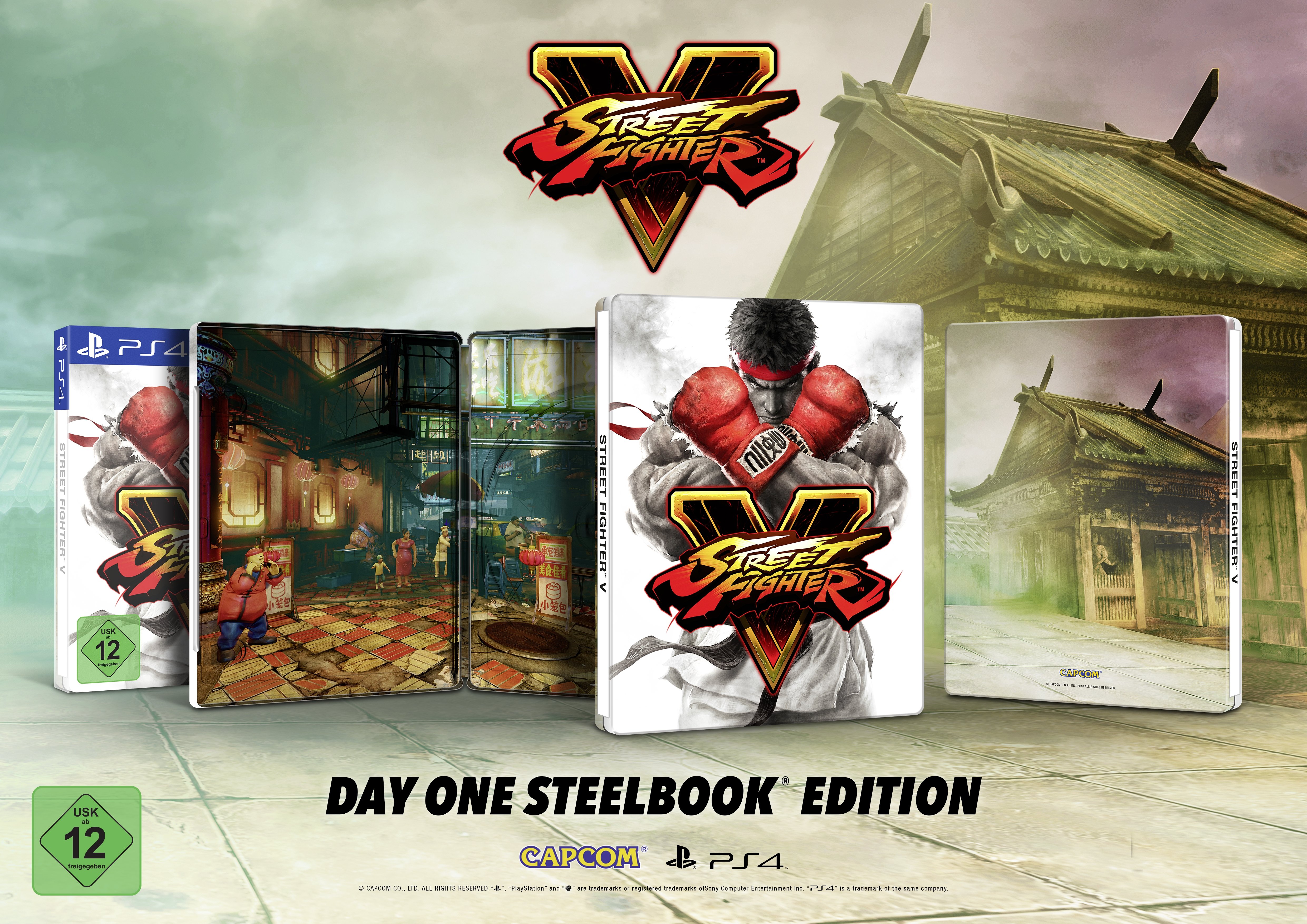 Fans, die direkt zur Veröffentlichung von Street Fighter V am 16. Februar 2016 zuschlagen möchten, erwartet eine besondere Überraschung: Die erste Auslieferung des Spiels für PlayStation 4 wird zusätzlich zur normalen Version auch in streng limitierter Ausführung als Steelbook erhältlich sein! Diese Version beinhaltet das komplette Spiel in einer edlen Ryu-Verpackung, die im Innern das ikonische China-Level präsentiert. Ein absolutes Muss für alle wahren Street Fighter-Fans!