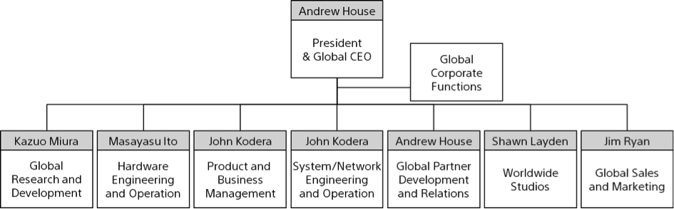 CEO wird Andrew House, der bislang Chef der SCE Sparte war und das Hauptquartier bezieht die neue Abteilung in San Mateo (USA) mit Zweistellen in London (UK) und Tokyo (Japan).