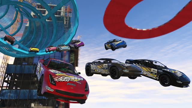 Stunt-Rennen sind überall zu finden, egal ob hoch oben über der Skyline von Los Santos oder zwischen den tückischen Blättern der Windräder von RON Alternates Windpark. In den neuen Rennen brettern Fahrzeuge kopfüber durch Loopings und Röhren, schießen dank Beschleunigungsmarkierungen mit Extra-Schub über Rampen, nutzen durch Streckenverzweigungen und -zusammenführungen unterschiedlichste Wege und rasen durch gigantische Feuerreifen.