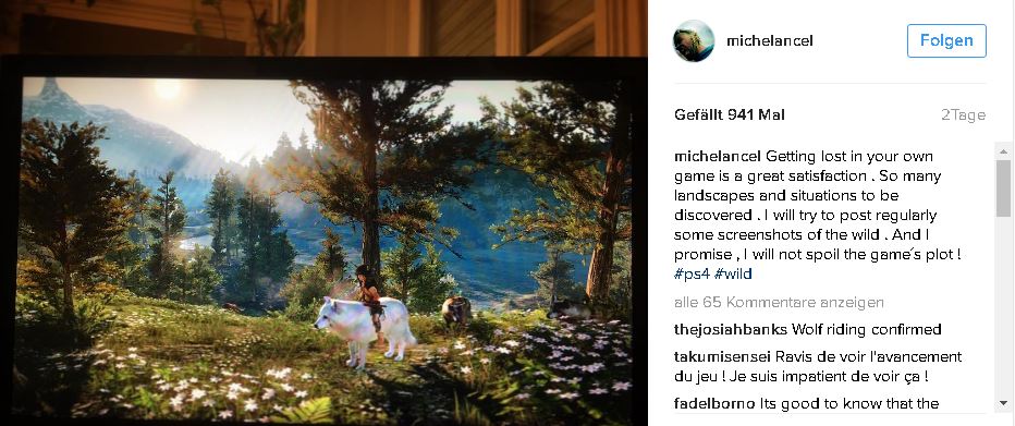 "Getting lost in your own game is a great satisfaction . So many landscapes and situations to be discovered . I will try to post regularly some screenshots of the wild . And I promise , I will not spoil the game´s plot !"