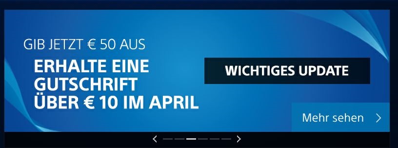 Sony hat nun (etwas ungewöhnlich nur im PlayStation Webstore) die Information veröffentlicht, dass die Aktion "gibt im März 50€ aus und erhalte im April einen 10€ Gutschein" nicht so schnell umgesetzt werden kann wie ursprünglich gedacht.