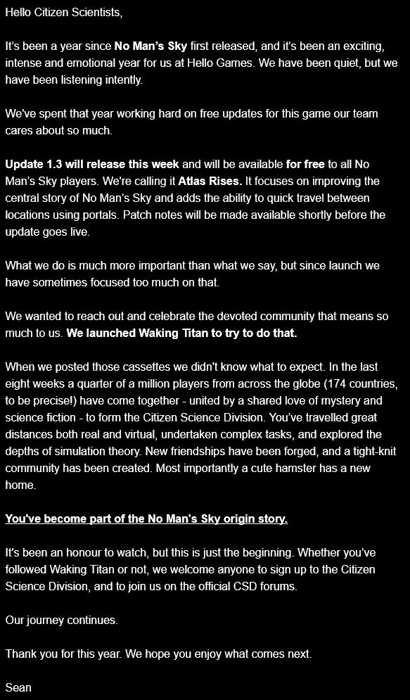 Man kann sagen was man will über die Sci-Fi Sandbox No Man's Sky, Entwickler Hello Games ist definitiv um größere Verbesserungen bemüht, seitdem das Spiel vor fast einem Jahr erschien.